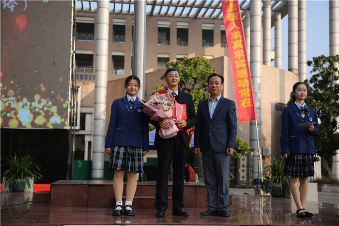 上午8時,全校師生齊聚廣場,共赴(fù)感動之約。副校長慶(qìng)曉宣讀表彰決定:經過全校師生認(rèn)真評(píng)選,湯洪升(shēng)、庾金保、閆明、劉聲華、王忠文、沈秋發、潘文傑老師,楊師林校工,高202班劉雨欣同學,獲第九屆(jiè)“感動校園人物”榮譽稱號;2022屆高三(sān)數學備課組,獲第九屆“感動校(xiào)園集體”榮譽稱號。市(shì)教育局(jú)黨委委員、副局長王東(dōng)山,安徽省(shěng)唯因篤建(jiàn)設(shè)工程公(gōng)司代表楊詩蕊,安徽華冶律師事務所代表陳懷彬,泰爾重工(gōng)股份有限公司代表許嶺,馬鞍山農村商業銀行經理齊金海,馬鞍山家和投資公司董事長方中等蒞臨現場致賀(hè)。二中黨(dǎng)委書記、校長(zhǎng)王玉平,副校長褚亞飛,工會主席畢小紅,副(fù)校長王躍兵,黨委(wěi)委員喻全貴,與全校3300多名師生共同參加這一盛典。