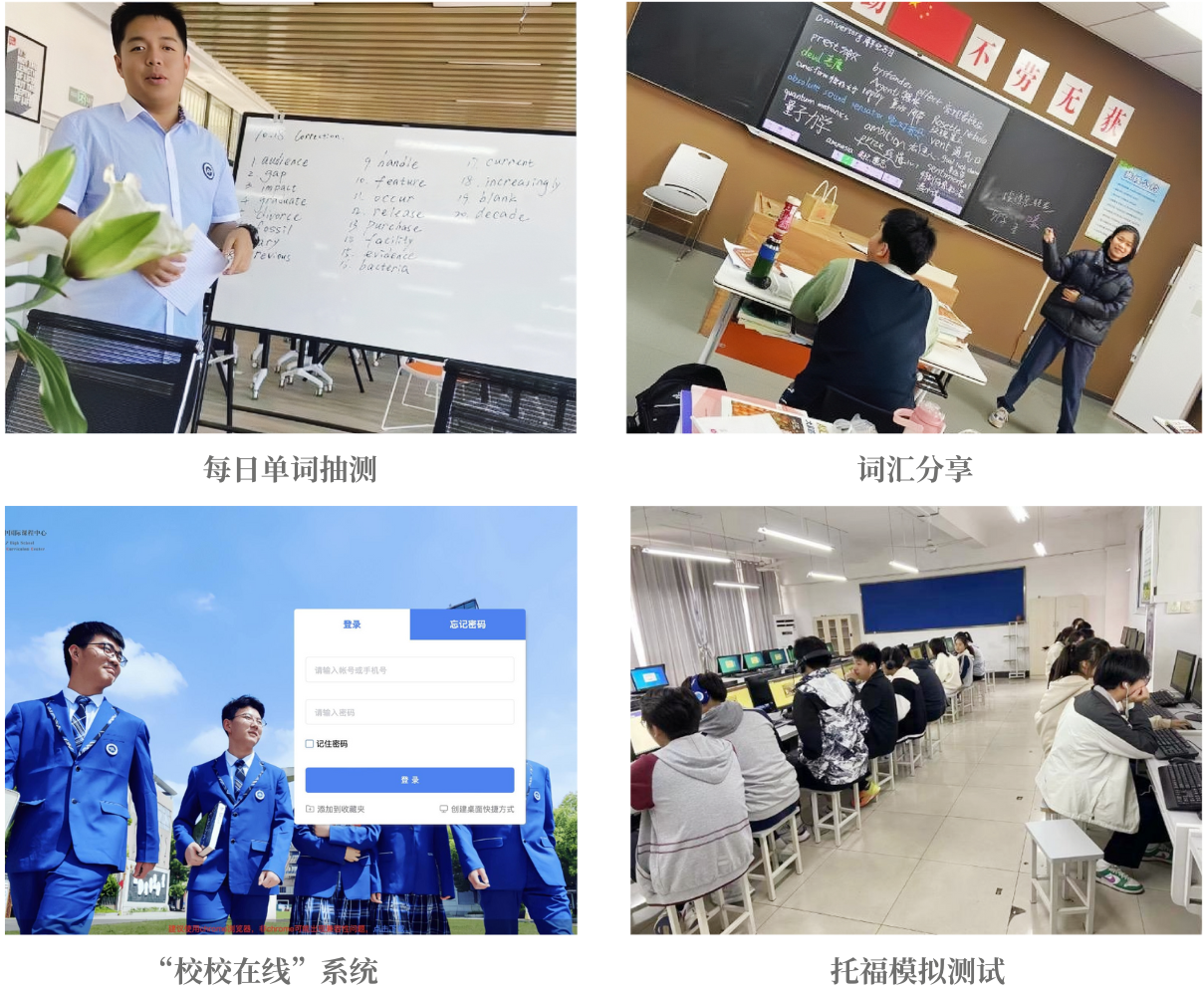 此外,ICC還采用國內一線的英語考試培訓係統(tǒng)“校校在(zài)線”進行托福英語訓練、在線作業安排及定期模擬(nǐ)考試。