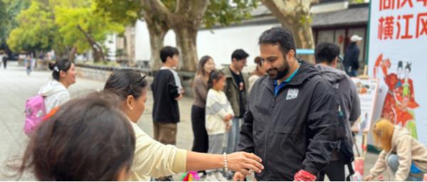 國慶長假的第一天,國際課程中心的師生們(men)踏上了前往采石風景區的愉快旅程。盡管途中細雨綿綿,但大家攀登高峰的滿腔熱忱絲毫未減。山巔之上,雲霧繚繞,景色如畫。下山之時(shí),雨過天晴,景區內正舉辦(bàn)著一場別開生麵(miàn)的活動——“同(tóng)慶華誕75周年,橫江風情共聯歡”。活動現場,傳統與現代交織,文(wén)化韻味濃厚:精準投擲的飛鏢、輕盈躍動的踢鍵子、古韻悠長的(de)投壺遊戲、智慧與耐心並存的九連環解鎖……每一項文化體驗活動都吸引著師生們(men)的積極參與。