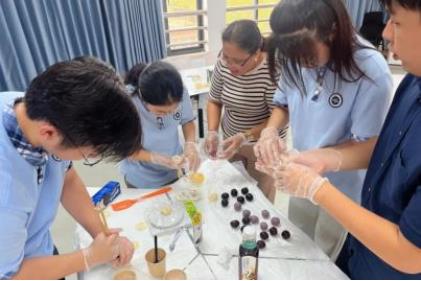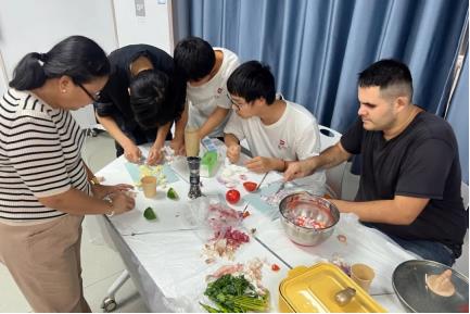 9月14日,中秋活動拉開了序幕。學(xué)生們興(xìng)致勃(bó)勃地投入(rù)到冰皮月餅的製作中,從和麵、包餡到(dào)成型,每一步都充滿了探索的(de)樂(lè)趣(qù)與成功的喜悅。與此同時,來自墨西(xī)哥的外(wài)教Memo老師也為(wéi)大家帶來了驚喜,他親自示(shì)範如何製作地道的Quesadilas(墨西哥餅)及莎莎醬。當酥香的Quesadilas搭配著新鮮製作的莎莎醬及芝士碎呈現在眼前(qián)時,一股濃鬱的墨西哥風情彌漫在空氣中(zhōng),讓大家(jiā)在(zài)品嚐(cháng)美(měi)食的同時,也感受到了不同文化的獨特魅力。