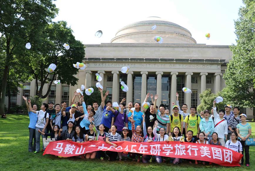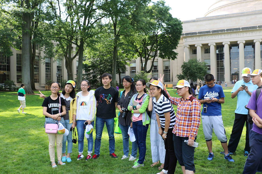 Hello Boston ! 一個上午的奔波(bō),終於在下午得以一睹兩所世界名校——哈佛大學和麻省理工學(xué)院的(de)風采。波士頓,這座文(wén)化名城,從兩(liǎng)百(bǎi)多年前一群青年倒入海中的(de)茶葉的香(xiāng)氣裏,便醞釀著,滋潤著美國文化生長,壯大,繁榮。與北大(dà)清華(huá)高高豎起的門牌不同,哈佛則“低調奢華有(yǒu)內涵(hán)”。一座看似普普通通的門,卻通向無數學子向往的知識殿堂。紅磚白瓦,鬱鬱蔥蔥的參天(tiān)大樹,使校園中多了幾分生氣,也體現了哈佛人對真理汲汲渴望與孜孜探求的深沉。和學生導遊漫步(bù)校園,她的開朗與幽默(mò)深深感染了我。圖書(shū)館的故事,既讓我開懷地融入其(qí)中,也(yě)使我不禁讚歎他們的勤奮與(yǔ)努力。' This moment will nap, you will have a dream; but this moment study, you will interpreta dream. '記(jì)得圖書館中有這樣一句(jù)話,或許正是這樣的學習精神,才使(shǐ)得哈佛培養出不計其數的深深熱愛著母校的人才。作為一個文科生,可能我與麻省理(lǐ)工就此無緣,但(dàn)置身其中,濃厚的學習氛圍和優(yōu)美的環境讓我放鬆。羅馬式的建築,鬆軟芬芳的草地,歡呼,嬉笑,追逐,打鬧,或是悄悄用鏡頭記錄湛湛(zhàn)藍天與綿綿白雲,靜靜躺下呼吸一抹清香,總能在某一時某一刻收獲內心的愉悅。合照中,每個人都笑得(dé)燦爛,像那照耀天(tiān)空的陽光,充滿對(duì)未來的渴望。遠處是隨風飄揚的校旗……
