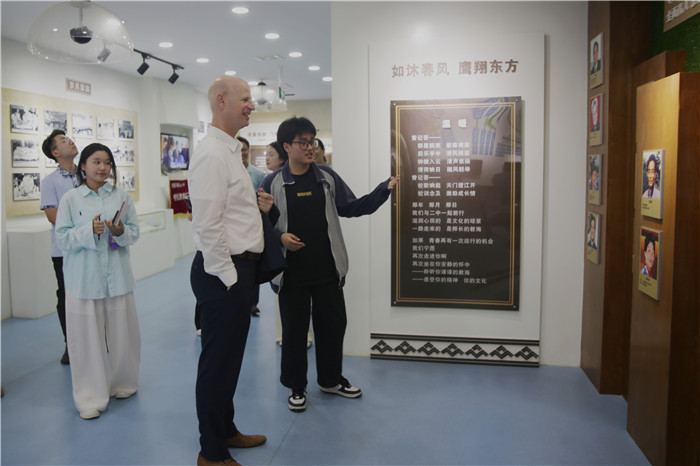 交流伊始,丹·斯坦因主(zhǔ)席一行走進校史館。館內翔實的(de)資料與實(shí)物,係統展現了我校的辦學曆史、發展脈絡與(yǔ)辦學成就。丹·斯坦因先生不時駐足觀看,認真聆聽講(jiǎng)解,對(duì)我校深厚(hòu)的文化底蘊與鮮明的辦學特色給予高度評(píng)價。隨後,一行人前往圖(tú)書館,對圖書館現(xiàn)代化的設(shè)施配置與良好的閱讀環境表示認可。