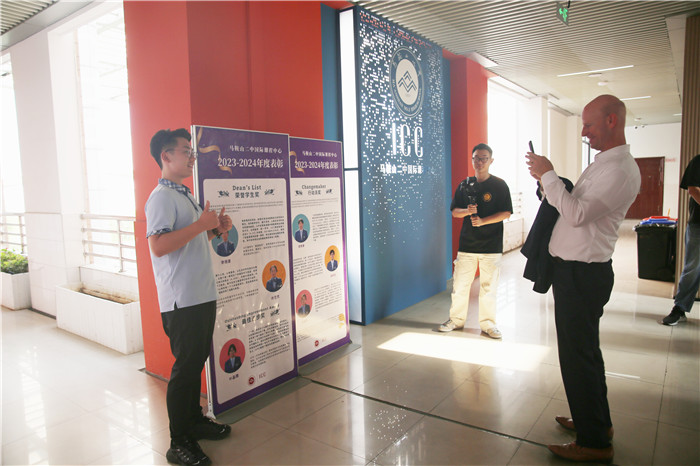 作為(wéi)本次訪問的重點環節,丹(dān)·斯坦(tǎn)因主席一行來(lái)到國(guó)際課程中(zhōng)心。現(xiàn)場教師(shī)詳細介(jiè)紹了國(guó)際課程的設置理念、教學模式與特色優勢,讓來賓深入了(le)解我校在國際化教育領域的(de)探索與實踐。值得一提的是(shì),我校國際課程班的兩名學生在參觀校園的全程中擔任了翻譯工作,他們專業的語言表(biǎo)達(dá)與從(cóng)容(róng)的交流態度,充分展現(xiàn)了我校學子的綜合素質,得到了丹·斯坦因主席一行的稱讚。