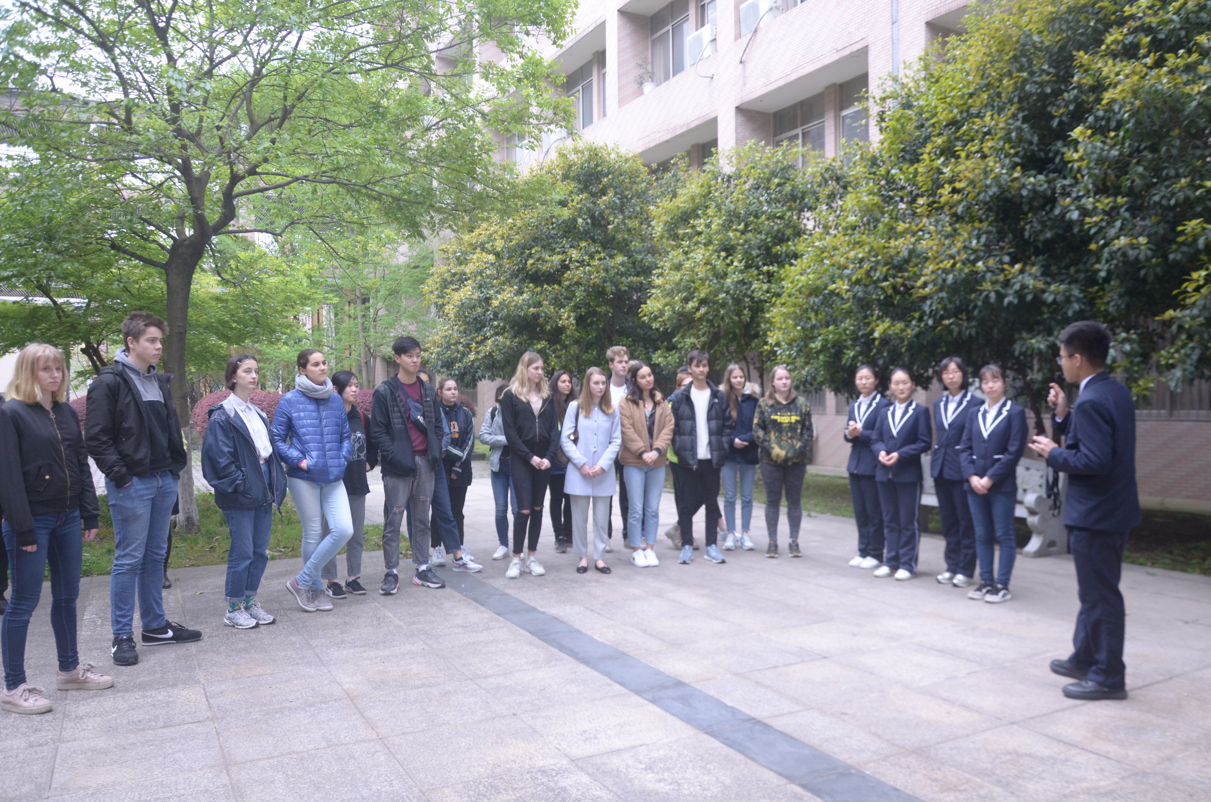 會後,與會人員合影留念,並在學(xué)生英文導遊的帶領下參觀校園。小導遊們為客人介紹孔子雕像、“雄鷹展翅”雕(diāo)塑、群星苑、北大橋、藝體樓,不僅帶(dài)客人們領略了二中風光,更傳播中華文明和二(èr)中文化。