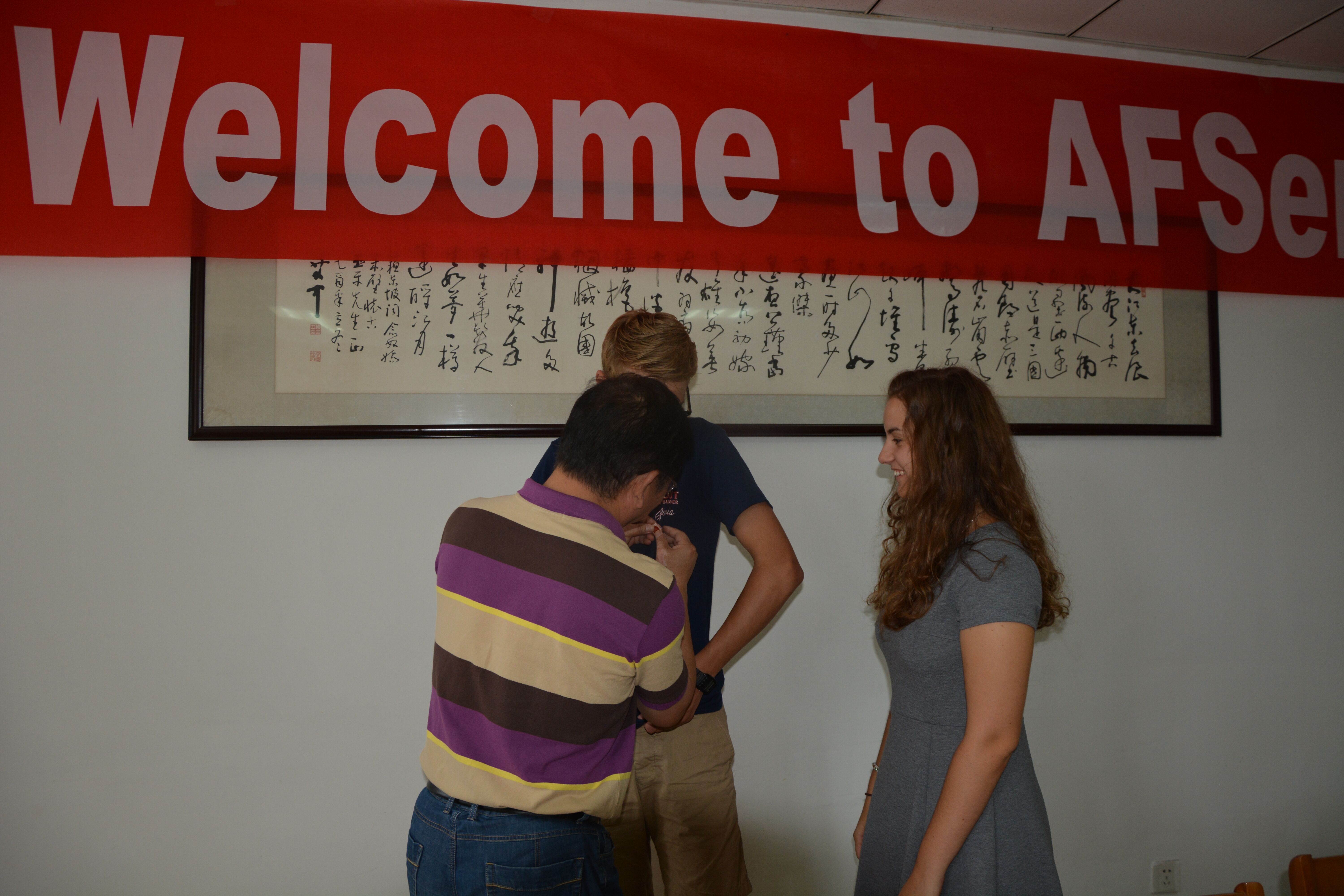 會議由國際交流處主任陳天才(cái)主持。首先是國際交流生分別作自我介紹,接著陳天才主任簡短介紹AFS項目在二中運行的基本情況,接著郭校長代表學校致歡迎詞,向兩(liǎng)位國際生表達了良(liáng)好祝願,並(bìng)表示中國是一個熱情好客的(de)國度,有著悠久的(de)曆史文(wén)化,二中是一個合作優秀(xiù)的集體,希望他們能夠在二中快樂生活。同時,也對交換生的中國家(jiā)長表達(dá)感謝,並(bìng)提出了一些(xiē)想法和希(xī)望。最後,郭校長為兩位國際交流生親自佩戴校徽,贈送校服。會議在輕鬆,友好的氛圍中結束。