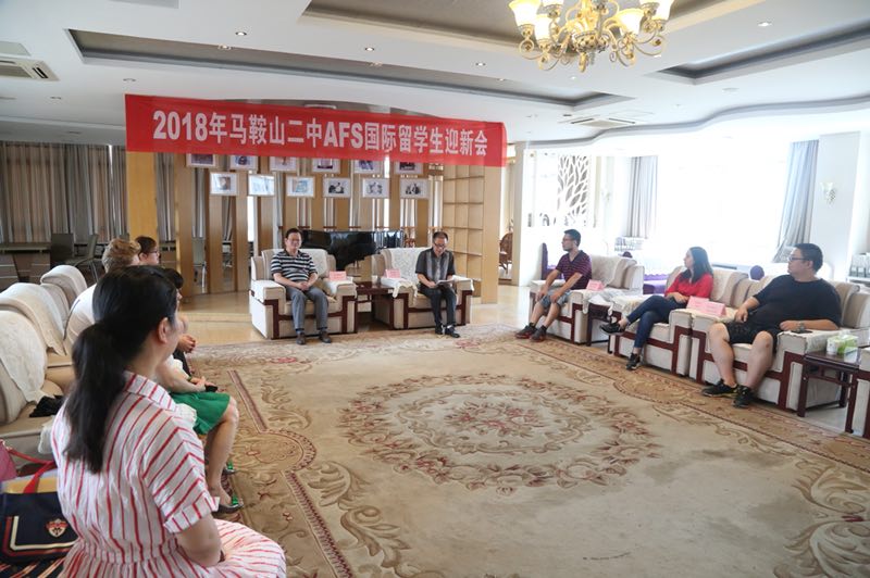 8月(yuè)31日下午(wǔ)兩點半,馬鞍山二中國際留學生迎(yíng)新會在校行政樓四樓(lóu)後樂(lè)書(shū)屋隆重舉行。會議由國際部主任孫濱主持。校(xiào)長(zhǎng)郭惠宇、兩位國際留學(xué)生及接待家庭代表、留學生(shēng)所在班級班主(zhǔ)任曹勁鬆老師和高瑩老師出席會議。