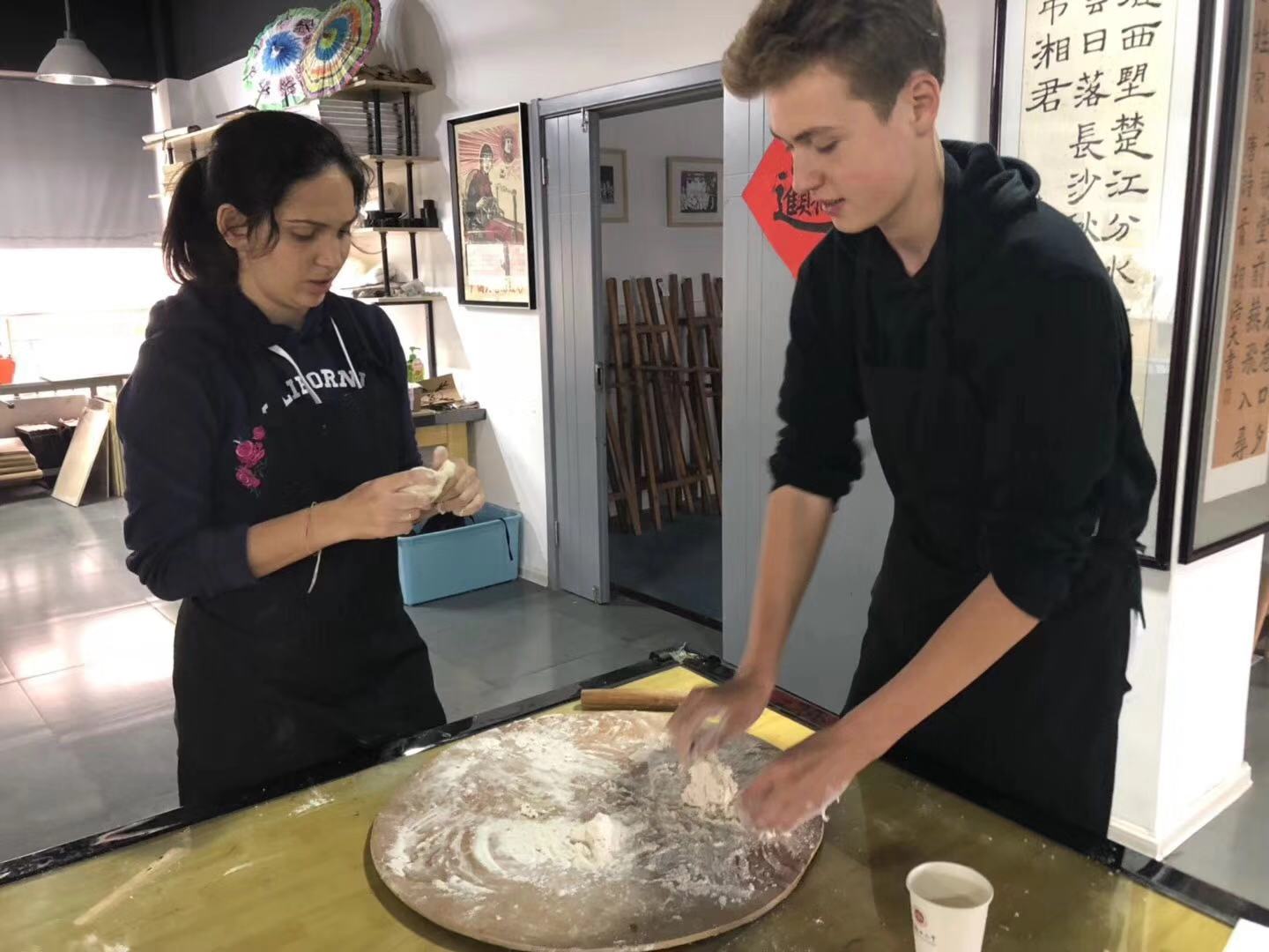 This is me and Chiara learning making dumplines in class.