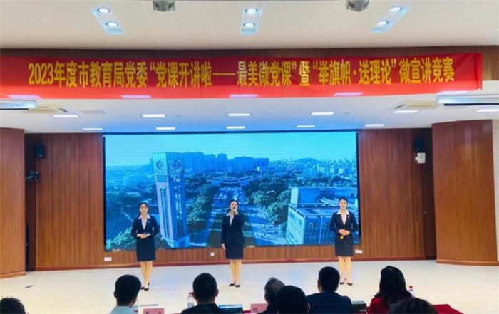2023年5月22日下午,市教育局黨委舉辦的“黨課開講啦——最(zuì)美微黨課(kè)”暨“舉旗幟·送理論”微宣講競賽在建中學校成(chéng)功舉行。市教育局黨委副書記、副局長(zhǎng)陳向陽到場指導並觀看競賽,各直屬單(dān)位(wèi)黨組織負責人、部分黨員(yuán)教師代表和(hé)首(shǒu)屆年(nián)輕幹(gàn)部讀(dú)書班學(xué)員(yuán)全程觀摩。