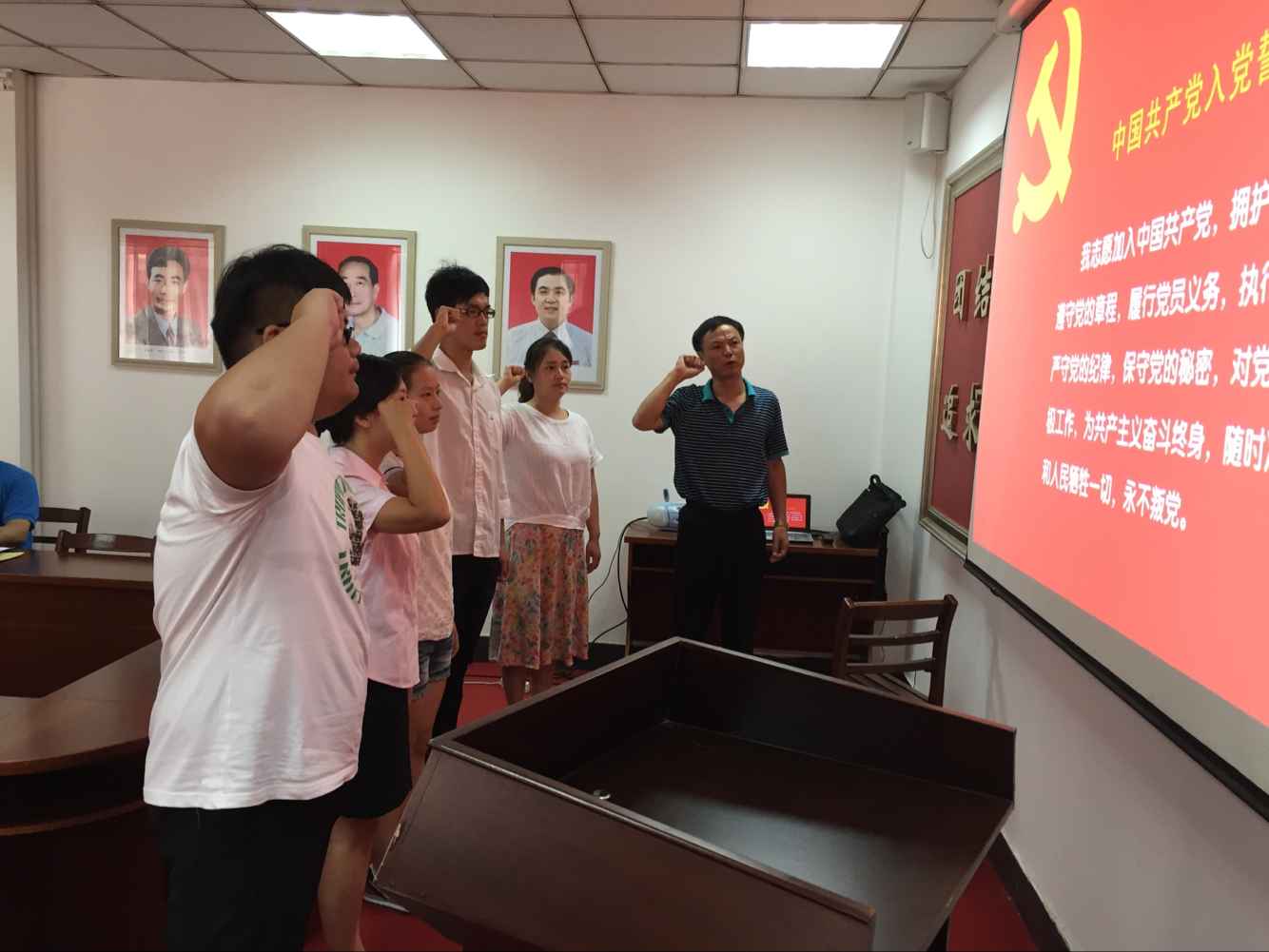 2015年8月18日上午9:00於一樓會議室召開了第三支部大會(huì),出(chū)席本次會議的有校黨委副書記郭惠宇同誌、校黨委委員褚(chǔ)亞飛同誌、校團委陶(táo)源書記、校辦副主(zhǔ)任陳倉篩同誌、5名新發(fā)展的黨員及部分老黨員,本次會議(yì)的主題是(shì)新黨員入黨宣誓。