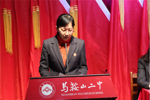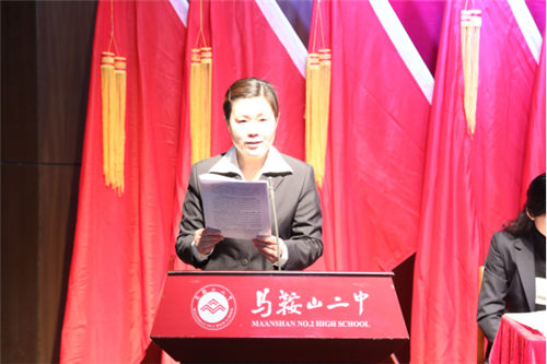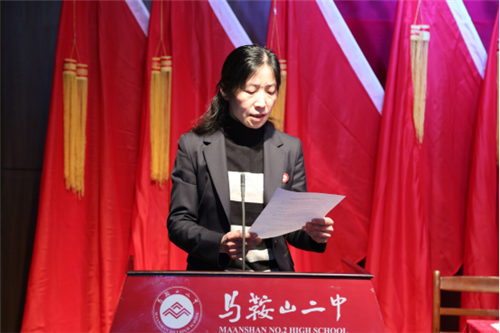 校長(zhǎng)郭惠(huì)宇同誌(zhì)宣讀市委組織部“關於馬鞍山市第二中學黨委委員(yuán)會組成人員預備人選的批複”
