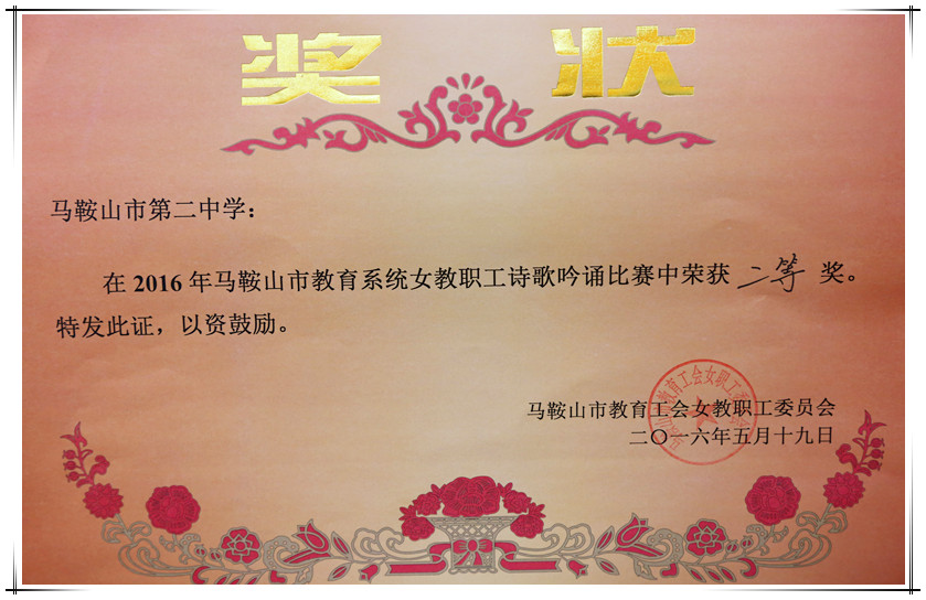 我校參賽隊(duì)由校黨委聶曉霞書記親自組隊,楊珵、於振鹿、劉靜文、陳戎(róng)(分校)等青(qīng)年女教師積極參與(yǔ)。比賽現場,我校參(cān)賽隊的五位成員,以(yǐ)飽滿的精(jīng)神和洪亮的嗓音,飽含著對(duì)二中的深情(qíng),抑揚頓(dùn)挫地完成了原(yuán)創作品《二中賦》的吟誦(sòng),會場響起了一片讚許的掌聲,評委打(dǎ)出了肯定的成績(jì),我校參賽隊獲得(dé)了二等獎(全(quán)市第三名)的好成績。