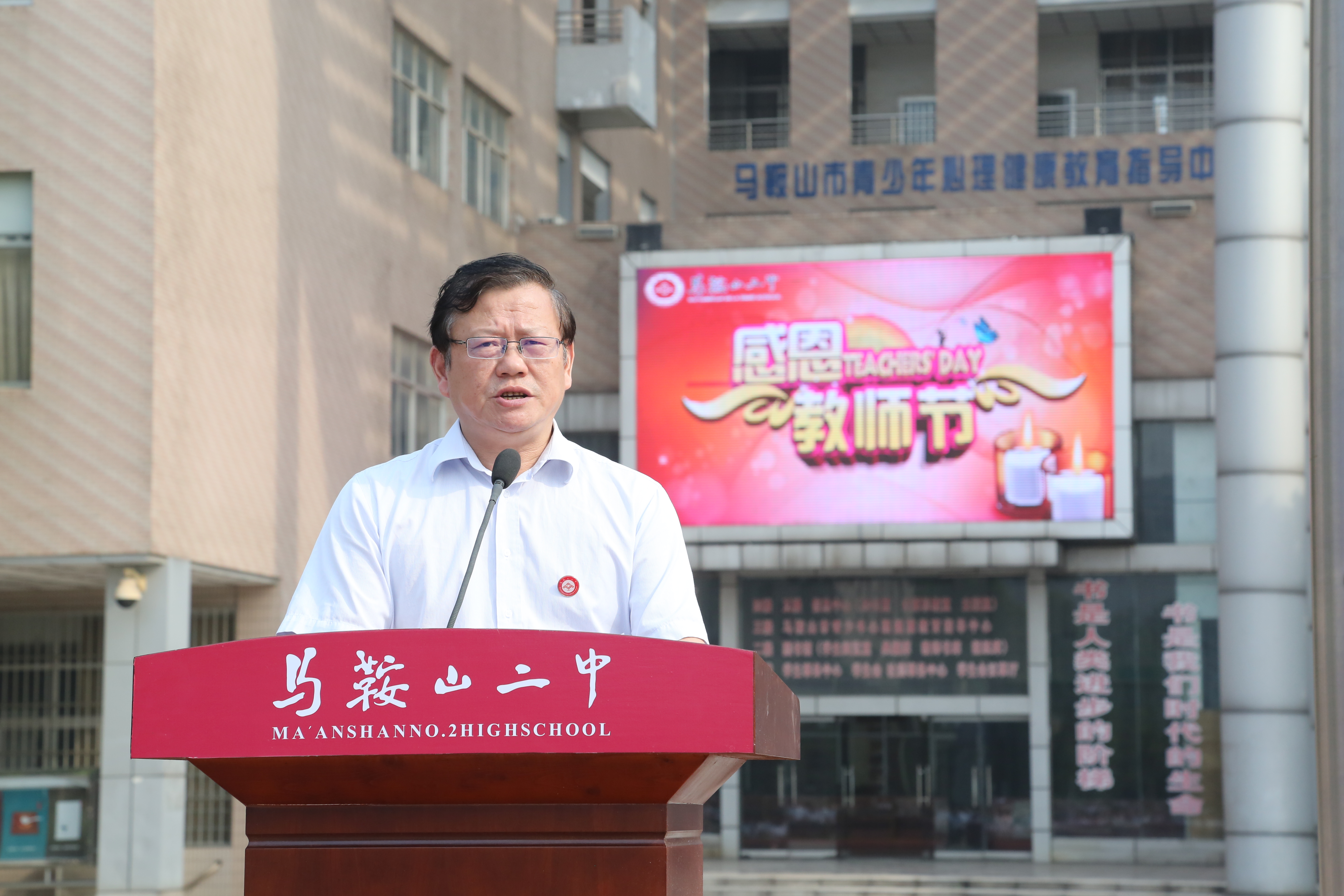 馬鞍山(shān)市政府(fǔ)副秘書長劉方文先生代(dài)表馬鞍山市政府向辛勤工作在一線為馬鞍山教育事業付出辛勤努力的各位教師表(biǎo)示衷心的感謝和節日的問候,並對教師隊伍的建設和二中的(de)發展提出了希望,希望廣大教師繼續提高師德水平,爭做黨(dǎng)和人民(mín)滿意的“四有(yǒu)教師”;希望同誌們堅持教書與育人相結合,促進學生德智(zhì)體美全麵發展;希望學(xué)校和社會共同努力,構(gòu)建綜合性立體化的教育體係,為學生健康成長創造良好環境;希望通過加(jiā)大對教育的支持保障力度,著力形成推動教育發展的強大合力,不(bú)斷推動馬鞍山教育事業進一步發展。