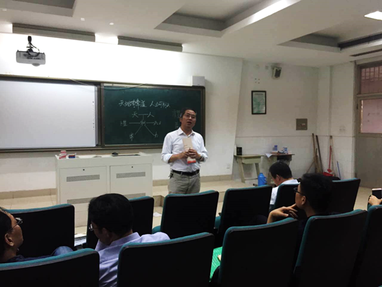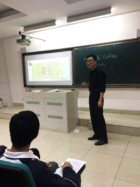 第二節課為杜飛老師的《大天而思之  孰與物畜而製之》。這是一篇經典(diǎn)的古代專題論文,體現了荀子哲學思想的精髓,文本雖然很隱晦艱澀,但杜老師抓住荀子散文的說理特點和其思想的基本內涵,窺一斑而知全豹,由點到麵、深入淺出地(dì)引領(lǐng)學生透過(guò)文(wén)字,在誦讀和思考中去提升學生的思維(wéi)品質和審美鑒賞能力。整(zhěng)節課流程順暢,教學目標的互動生(shēng)成(chéng)也真實有效。課堂板書設計獨特新穎,並緊扣文本核心;通過適(shì)時講解”“等字源,增添(tiān)了課堂教學的生動性,又讓學生感受到傳(chuán)統文化的熏陶。