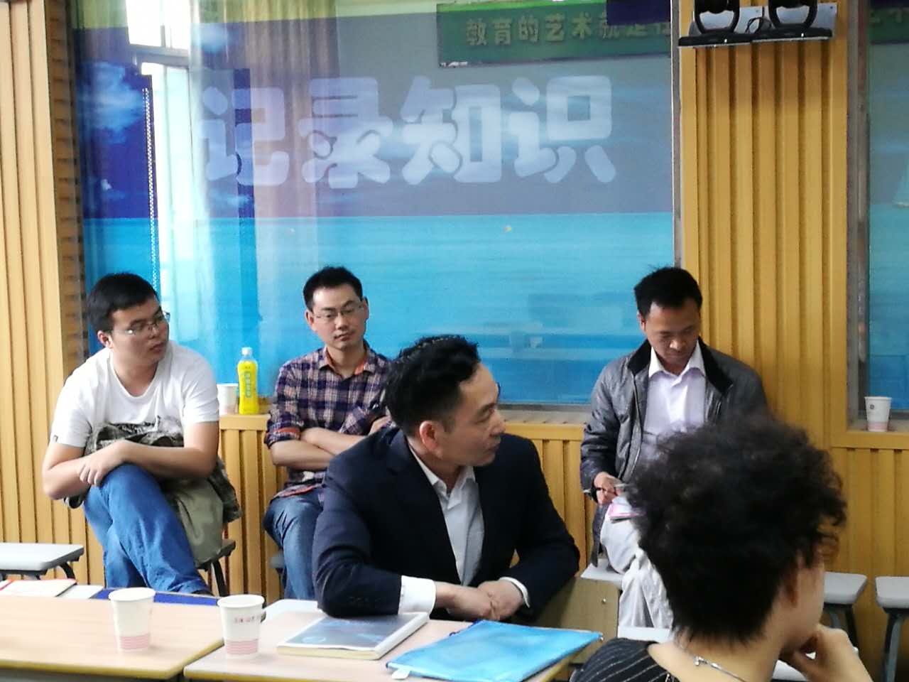 課後(hòu),教研組長盧大亮老師主持了評課議課活動,和縣一(yī)中陳曉(xiǎo)明老師和溫泉老師高度評價了這兩節課並針對性(xìng)的提出了寶貴的建議。