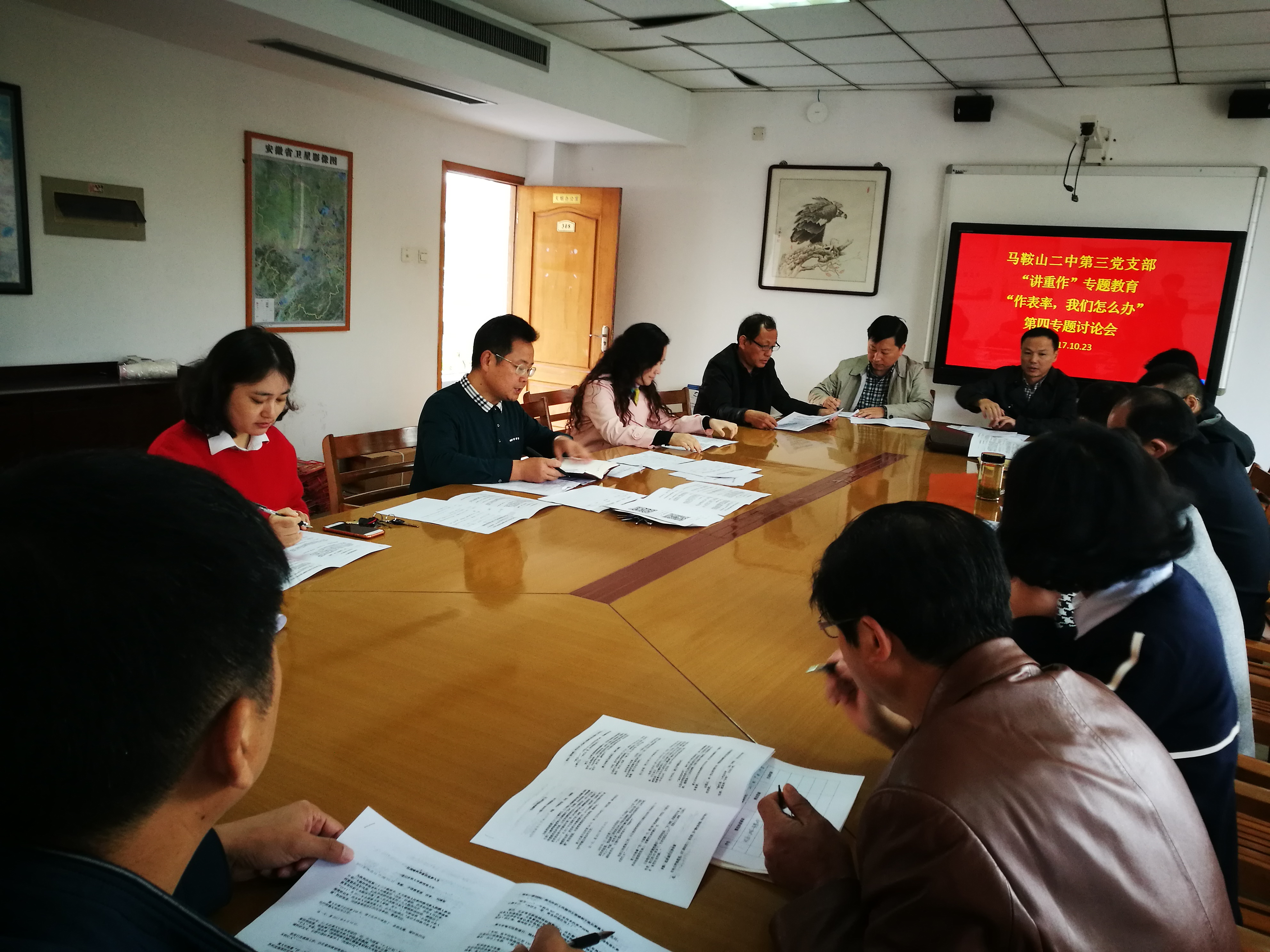 10月19日至23日,根據上(shàng)級黨(dǎng)委(wěi)和學校黨委的統一部署,馬鞍山二中黨委所屬各支(zhī)部(bù)分別召開開展“講政治、重規矩、作表(biǎo)率”專題教育“作表率,91视频网站怎麽辦”專題討論會。