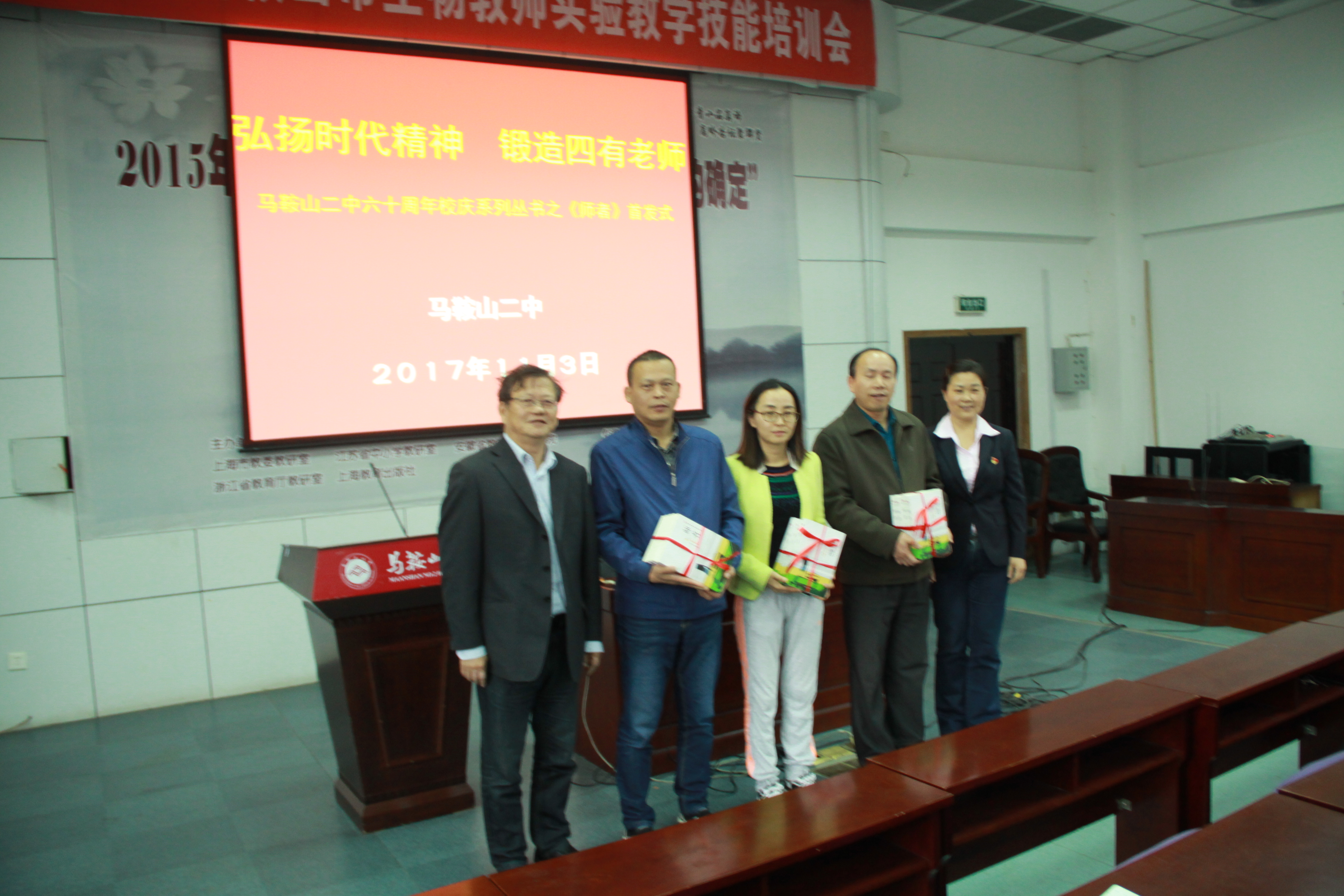 2017年11月3日,馬鞍山二中六十周年校慶係列叢書之《師者》首發式在行政樓二樓學術報告(gào)廳成功舉行。會議由校長郭惠宇主持,全體教師參會。