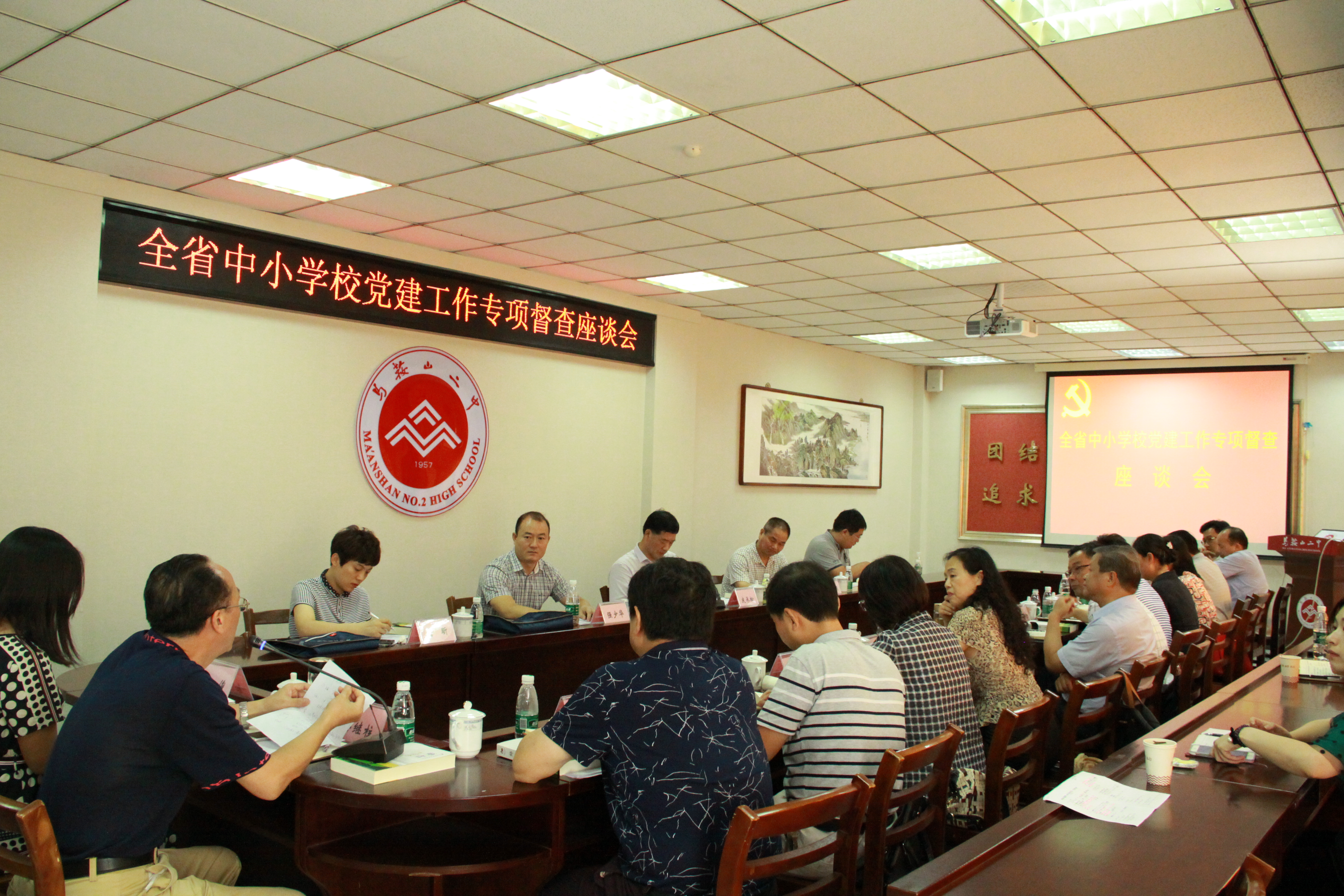 828日上午,省委教育工委學校黨(dǎng)建工作專項(xiàng)督查組在馬鞍山二中召開了全省(shěng)中小學(xué)黨建工作專項督(dū)查座談會。馬(mǎ)鞍山市教(jiāo)育局黨委書記、局長汪(wāng)昌斌同誌主持座談會。馬鞍山市(shì)教育局黨委副書(shū)記陸秋雯同誌、馬鞍(ān)山市教育局直屬(shǔ)學校黨組織書記參加了(le)座談。