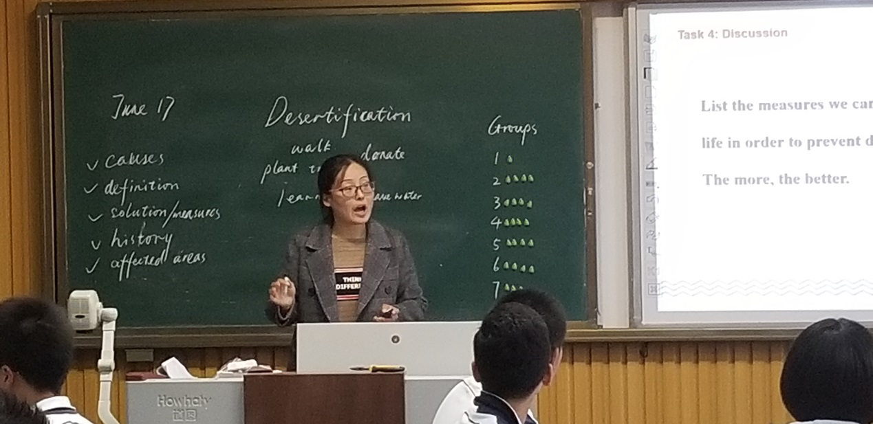 方靜(jìng)老師則(zé)以617日(rì)“世界抗沙漠化日”進行有效導入,帶領學生了解沙漠化的起因,解決措施等方(fāng)麵,引導(dǎo)學生關注環境保護問題。方靜(jìng)老師課(kè)件設計精美(měi),教學活動安排得井然有序,體現了極高的教學素養。與此同時(shí),她還利用小組(zǔ)比賽的(de)方式(shì),激發(fā)學生的閱讀熱(rè)情,高效地調動(dòng)了課堂氣氛(fēn),提高了(le)閱讀成效。