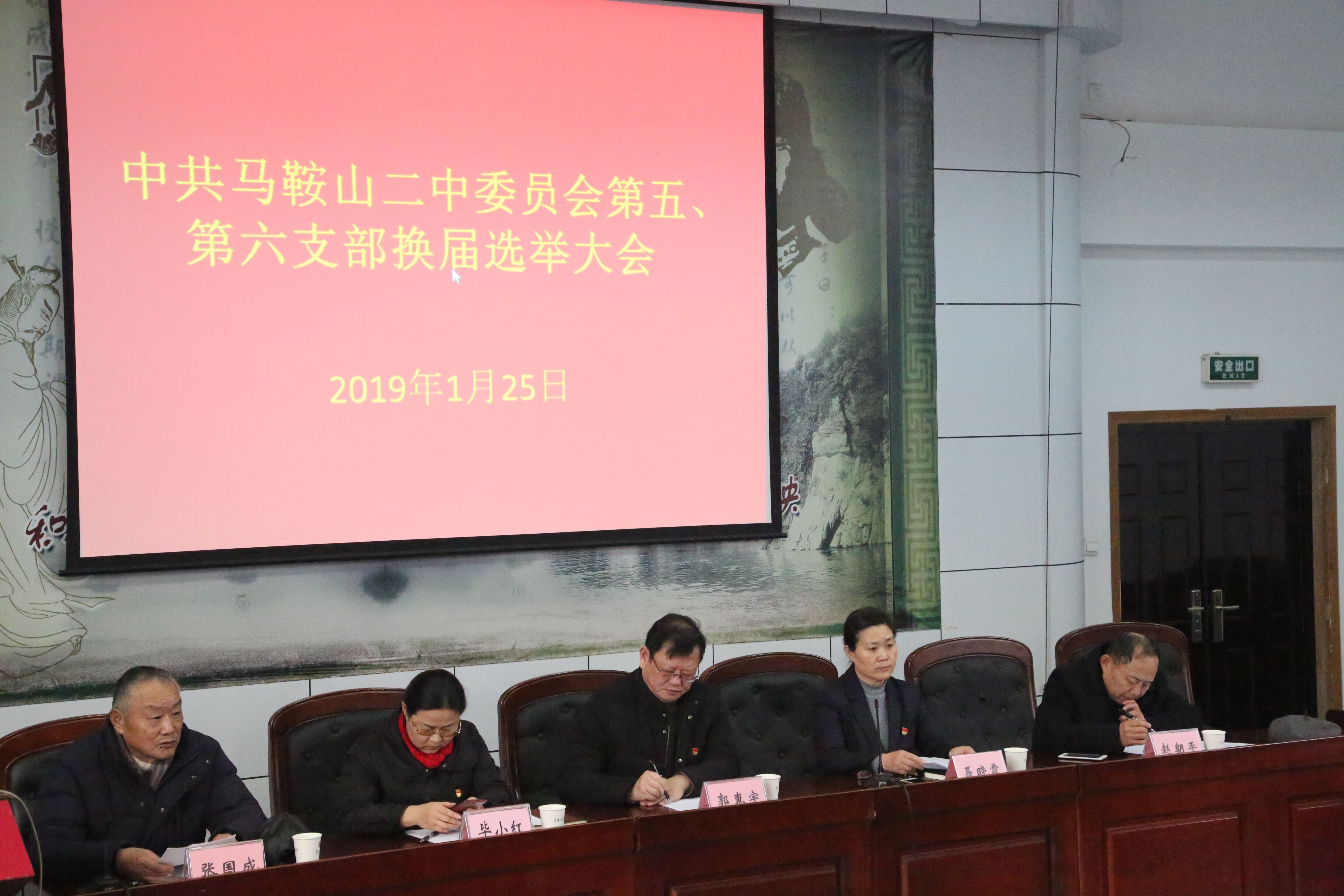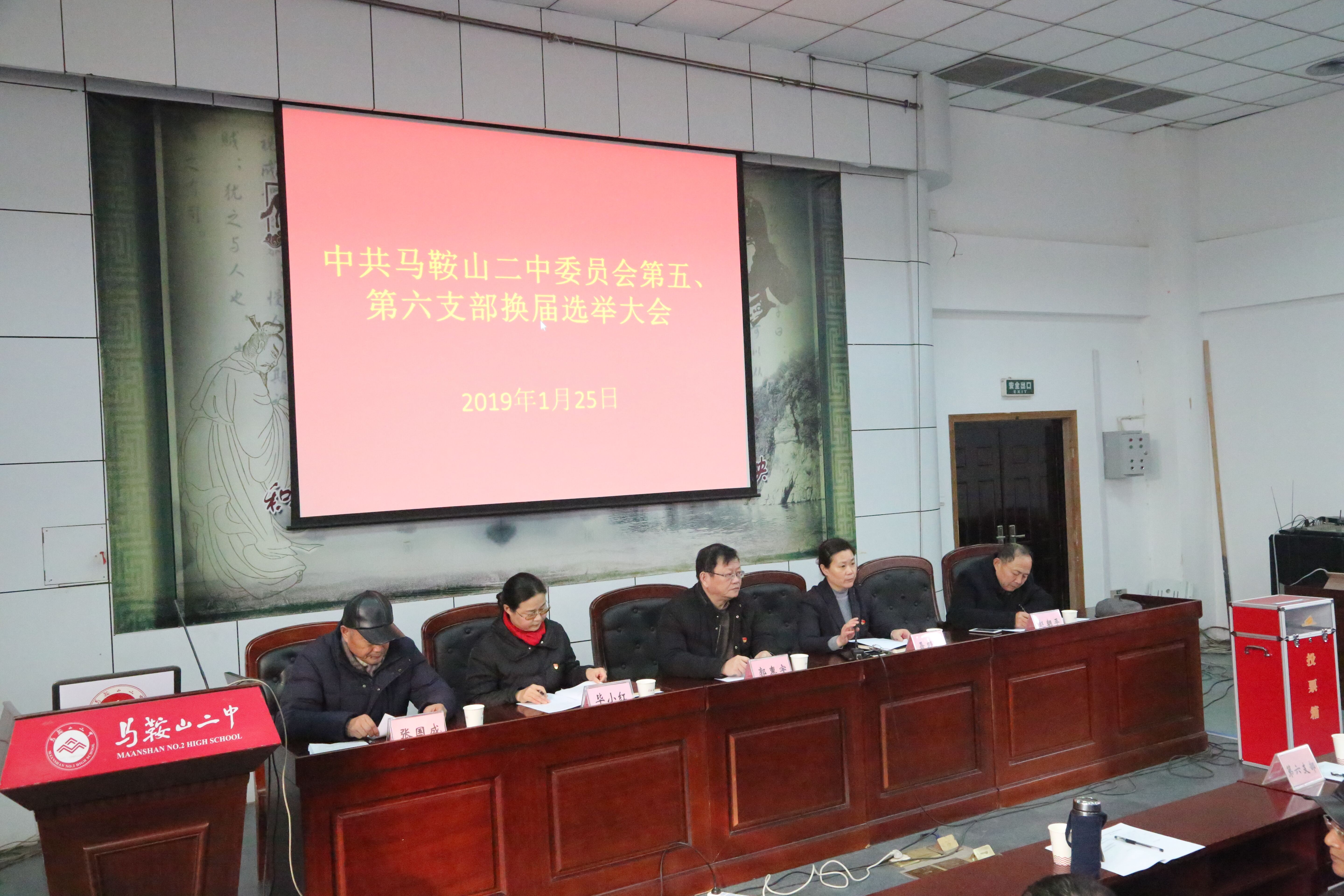 1月25日,馬(mǎ)鞍山二中第五(wǔ)、第六支部在行政樓二樓召開了換屆選舉大會,黨委書記(jì)聶曉霞主持會議,校黨委委(wěi)員(yuán)、校長郭惠宇、工(gōng)會主席畢小紅出席了此次會議,選舉工作圓滿完成。