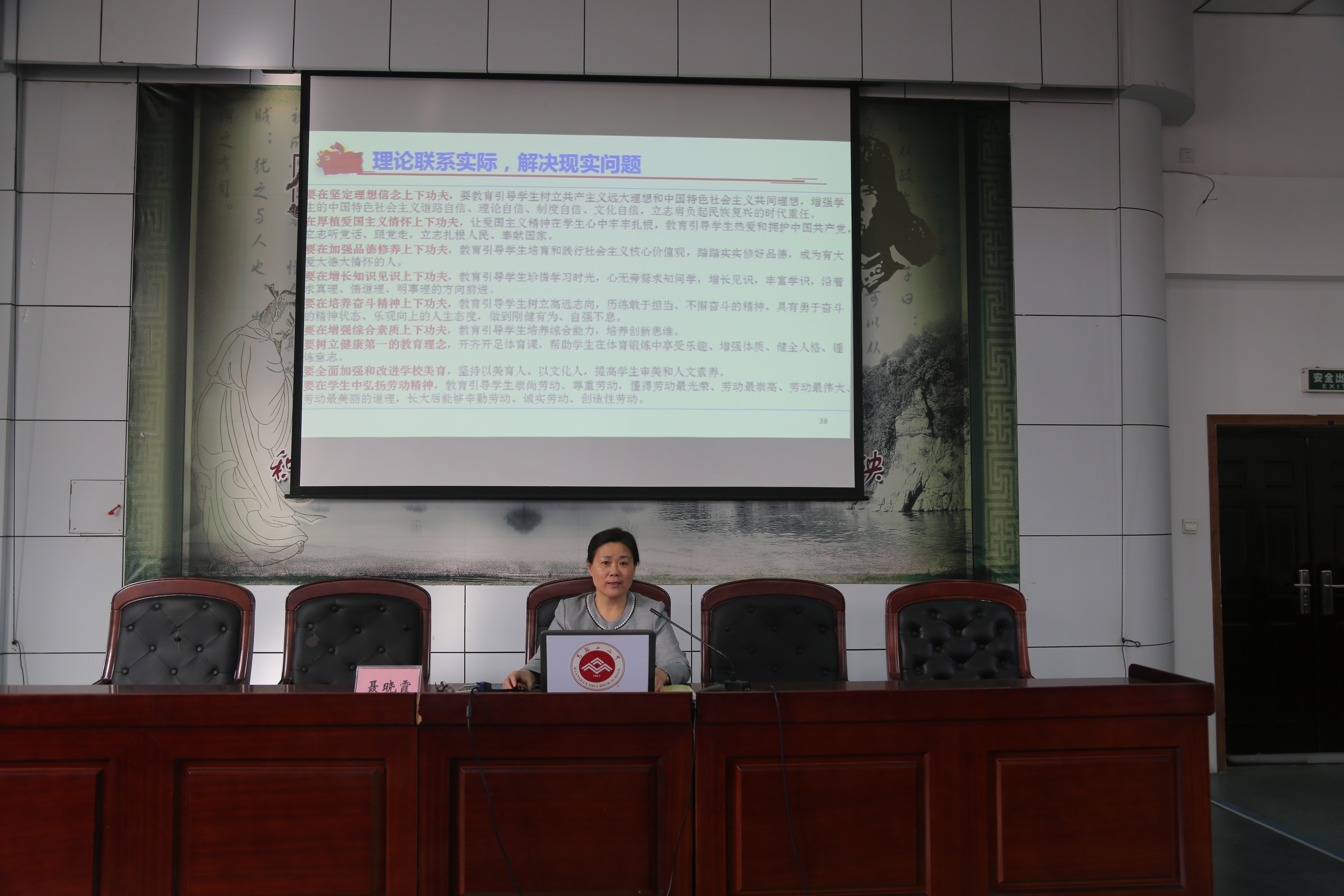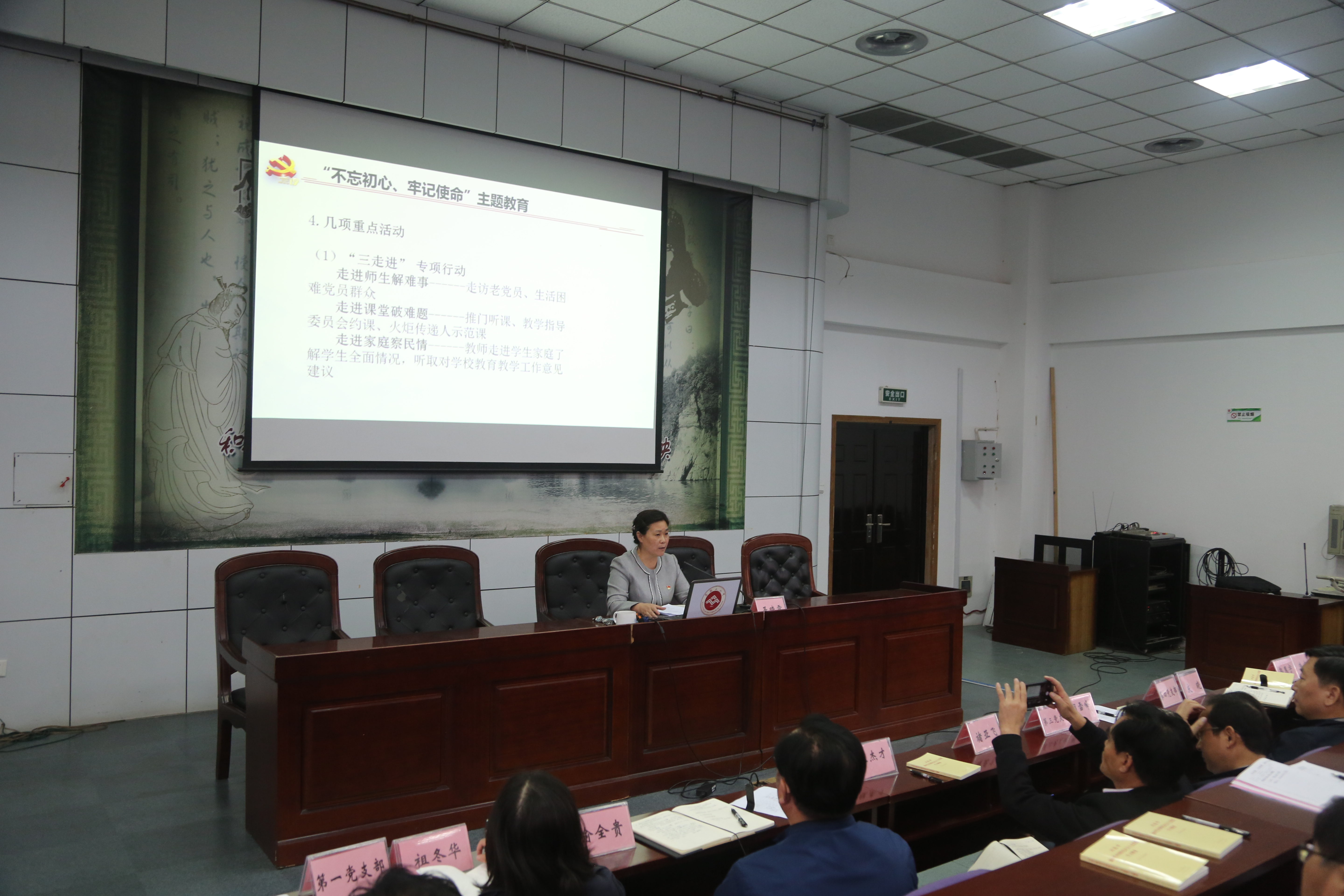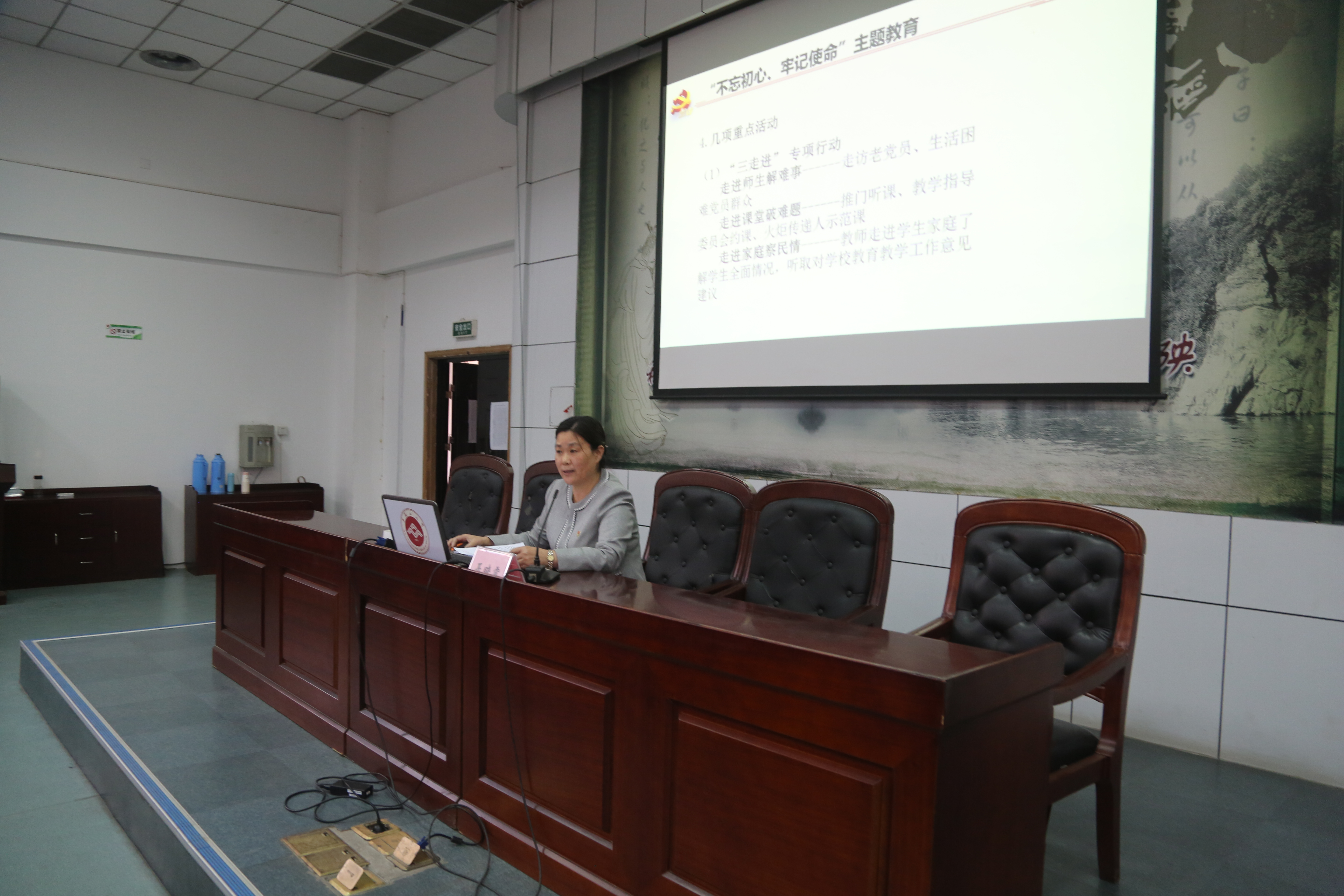 校黨(dǎng)委書記聶曉霞同誌首先再次(cì)強調了“不(bú)忘初心、牢(láo)記使命”主題教育的工(gōng)作安排、總體要求和重點措施,部署了“三走進”“四重四亮”等重點工作。