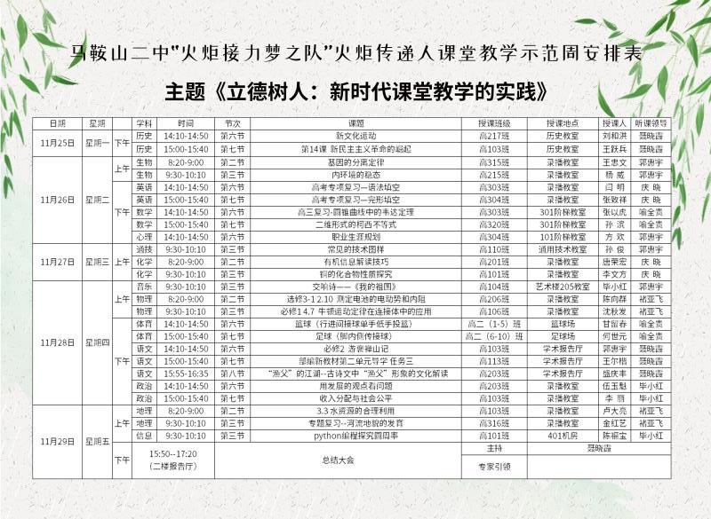 馬鞍山(shān)二中“火炬接力夢之隊”火炬傳遞人課堂教學示範周安(ān)排表
