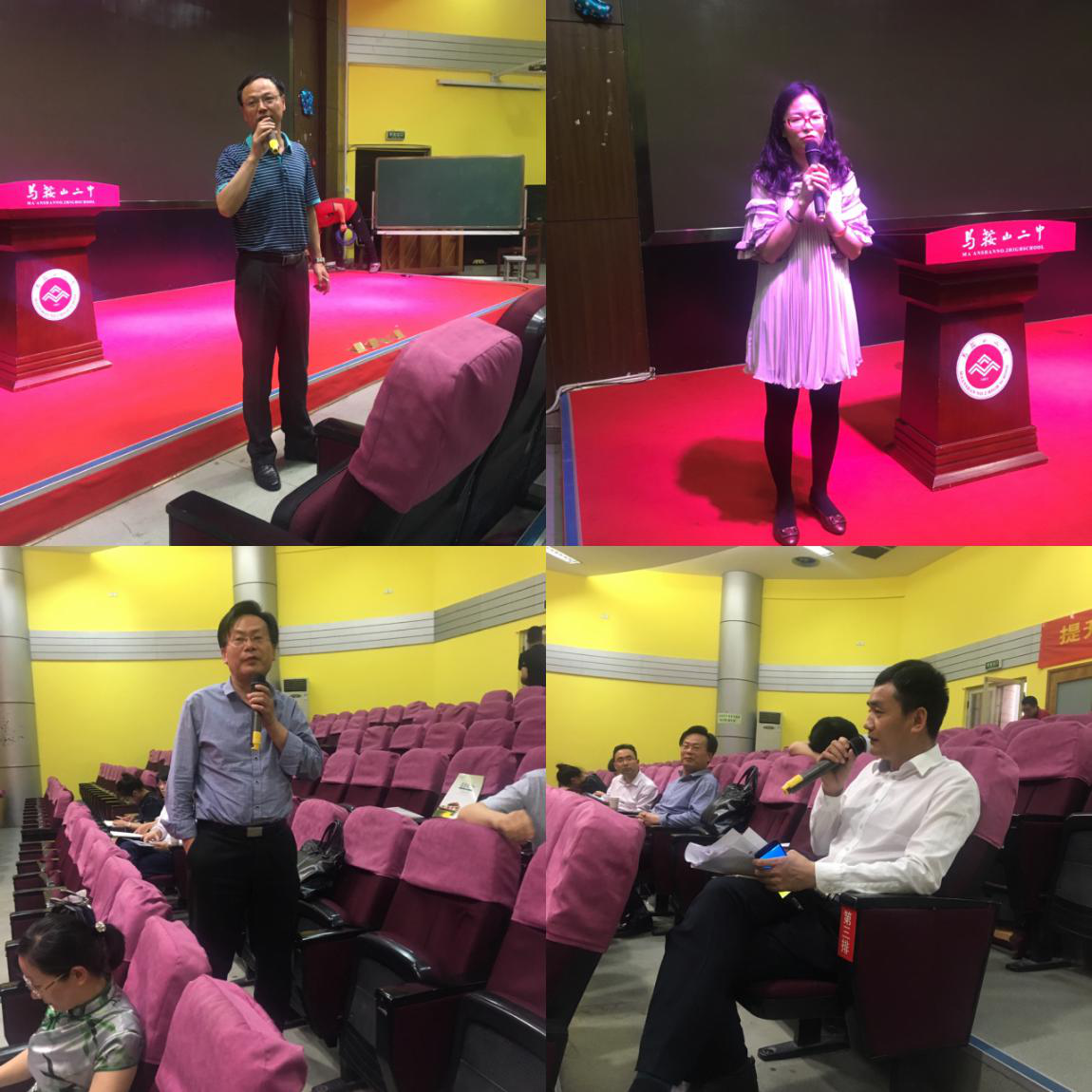 課後(hòu)的交流活動由教研組長潘文傑老師主(zhǔ)持,兩位上課老師分別介紹了自己的構思,黑龍江省遜克一中劉靜喜主任、二中鄭蒲港分校的章明星老師、我校的朱家讀(dú)老(lǎo)師給予了寶貴建議和看法。盛慶豐(fēng)老師(shī)最後總結發言,尤(yóu)其指出了文言文教學(xué)要落到實處,如何(hé)正確處理公(gōng)開課和常態課的關(guān)係,在場的老師受(shòu)益(yì)匪淺。會後大家合影留念,留下了寶貴的記(jì)憶。