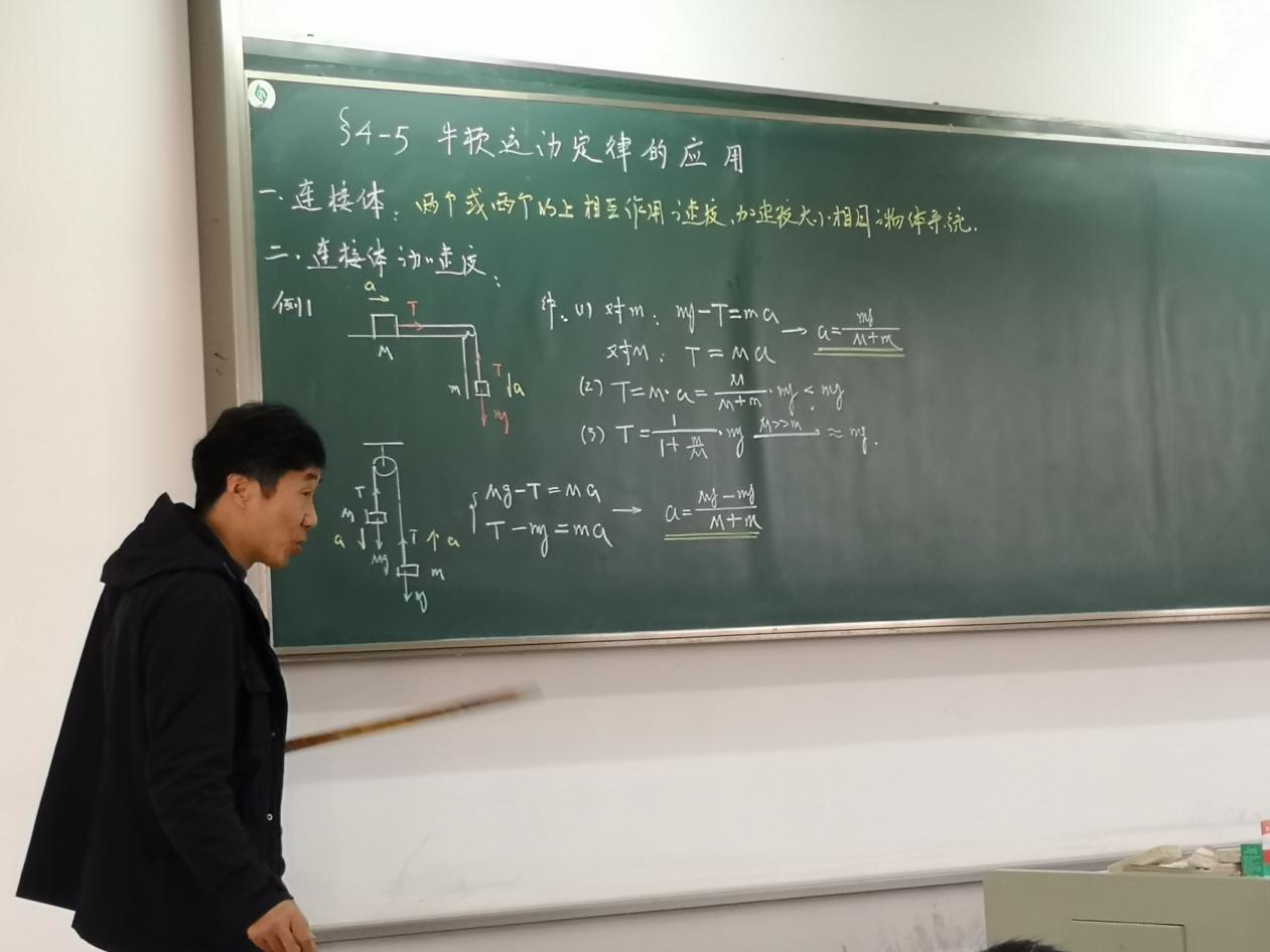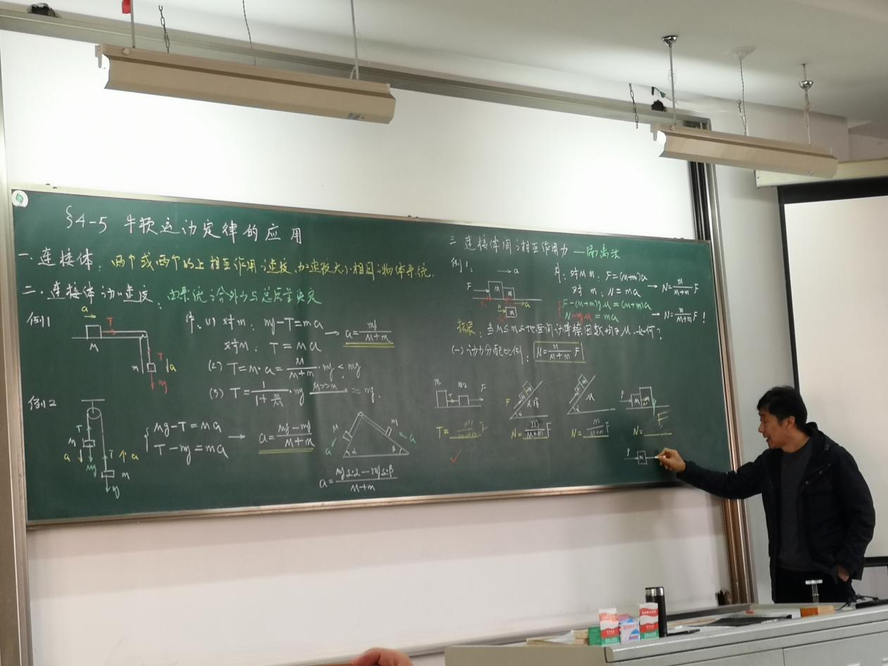第二節課是沈秋發(fā)老師(shī)帶來的《牛頓運動定律在連接體中的運用》,這是一節高一的習題課。本節課以連接體為載體,通過對連接體係統力和(hé)運(yùn)動的(de)關係進行梳理,糾正了同學們的一些慣性思(sī)維,加深了對牛頓運動定律(lǜ)的認識與理解。沈老師精(jīng)心挑(tiāo)選了例題,將處理多個物體時,整體(tǐ)法與隔離法的選擇與運用娓娓道來。同時,鼓勵同學們將得到(dào)的結論大膽運(yùn)用在練(liàn)習中,師(shī)生互動氣氛融洽,贏得了(le)現場的陣陣掌聲。一節課不知不(bú)覺間過去,黑板上留下了沈(shěn)老師(shī)工整漂亮(liàng)的板書(shū)。相信同學(xué)們不僅在思維(wéi)上得(dé)到了(le)提升,也學習到了沈老師認真嚴謹的態(tài)度。