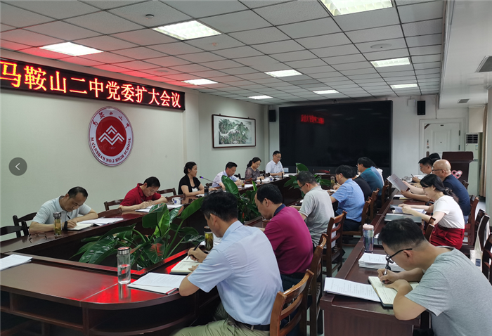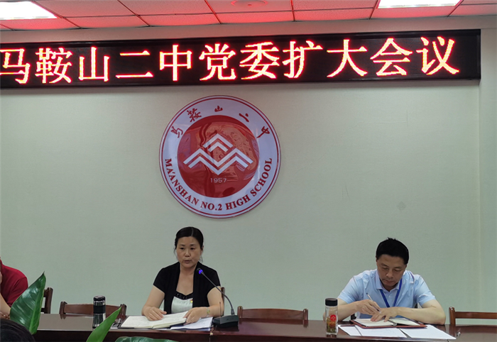 6月15日,馬鞍(ān)山二中黨委在行政樓一樓(lóu)會議室召開黨委擴大(dà)會議。校黨委書記聶曉霞主持會(huì)議,學校黨委委員、各支部書記、學校中層以上黨員幹部(bù)參加了會(huì)議。