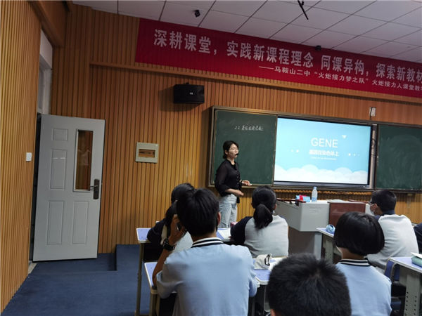 馬鞍山二中(zhōng)黨建品牌“火(huǒ)炬接力夢之隊”之火炬接力人課堂(táng)教(jiāo)學匯報周於本周正式開課。圍繞“深耕課(kè)堂,實(shí)踐新課(kè)程理念;同課異構,探索(suǒ)新教(jiāo)材教學”的(de)主題,5月11日上午,我(wǒ)校生物教研組韓靖、張貝兩位(wèi)青年教師完成了(le)新教材(cái)《基因在染色體上(shàng)》的教學示範課,學校黨委(wěi)副書記聶曉霞、校黨委委員喻(yù)全貴、教科處主任沈榮、市教研員禹萍老師和全市生物教師參加聽課、評課。