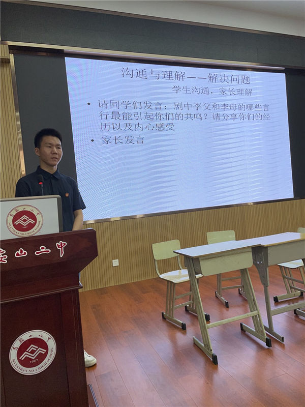 商林平老師的班會課由班主任主(zhǔ)持,把控班會(huì)課的整體走向和節奏,簡潔明快(kuài);利用精彩的短劇營造情景,凸(tū)顯親子溝通問題。學生的表演富有表現力(lì),為班會(huì)課增色(sè)不少,營造出親子溝通的真實(shí)情(qíng)景,全(quán)景展示了親子溝通(tōng)中的(de)矛盾和衝突,為後麵的(de)理性(xìng)分(fèn)析埋下伏筆,並引發感情共振(zhèn)和(hé)理性思考。無論是學生的表演,還是四位家長的(de)發言都(dōu)充滿(mǎn)真情實感,感人肺(fèi)腑,引人深思。