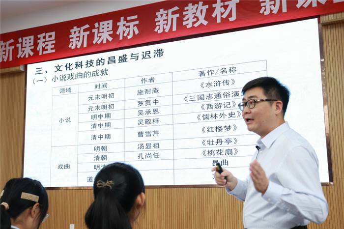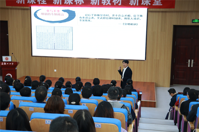 本次活動分現場授課及專家講(jiǎng)座兩(liǎng)部分。現場授課環節呈現了三堂高質量的課程,分別由華(huá)南師範大學黃牧航教授、馬鞍山二中劉和洪老師(shī)和合肥一中楊曙義老(lǎo)師教授。三位老師圍繞《中外曆史綱要(上)》第四單元進行了整體單元設計,從各自(zì)對於(yú)課程的理解進行(háng)了精心安排。劉和洪老師娓娓道來,解讀了明清易代的曆史,指出明朝曆史持續發展及麵臨的新危機(jī),為本單元的學習打下了堅實的基(jī)礎;黃牧航教授則(zé)利(lì)用學案和現場活動,讓學生在情境中深入學習,更為直觀地了解清朝的繁榮與危機;楊曙義老師則從紮實的史料教學中讓學生知曉(xiǎo)了明清兩代的經濟與文(wén)化的發展,思考經濟文化與時代發展之間的關係。授課結束後(hòu),通過(guò)教師述教(jiāo)、學生述學,本單(dān)元的課程設計理念得(dé)到了更為具體的貫徹,學生的學習情況也在第一(yī)時(shí)間得到反饋。上海市晉元高級中學特級教師李惠(huì)軍老師對三位老師的授(shòu)課進行了點評(píng),並向與會老師解讀了其(qí)對本單元課程的理解,提出了相對應的(de)教學建議,李老師的講解和分析讓與會老師受益匪淺,開闊了新的視野(yě)。安徽省教科院副院長、省(shěng)曆史教研員(yuán)徐(xú)貴亮老師對三位老師的(de)授課進(jìn)行(háng)了精彩的點評(píng)和總結,感(gǎn)謝三位老師的精心準備,希望全省曆史教師抓住新(xīn)課改的時(shí)機,更新教學理念,多學(xué)多(duō)思多提升(shēng)。