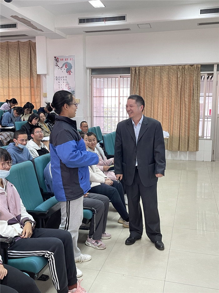 戴俊賢(xián)老師在“追逐(zhú)夢想,仰望(wàng)星空”、“成(chéng)才之路,奮鬥(dòu)有我”、“腳踏實地,砥礪前行”三個篇章中,以航天員、教師、科研人員的成長曆程為例,通過讓學生分享自己的理想(xiǎng)信(xìn)念以(yǐ)及奮鬥計劃,引導學生樹立理想,堅定信念;砥礪(lì)前行,腳踏實地。最後在戴老師的帶領下,同學們製定出了自己現階段的學習課表。