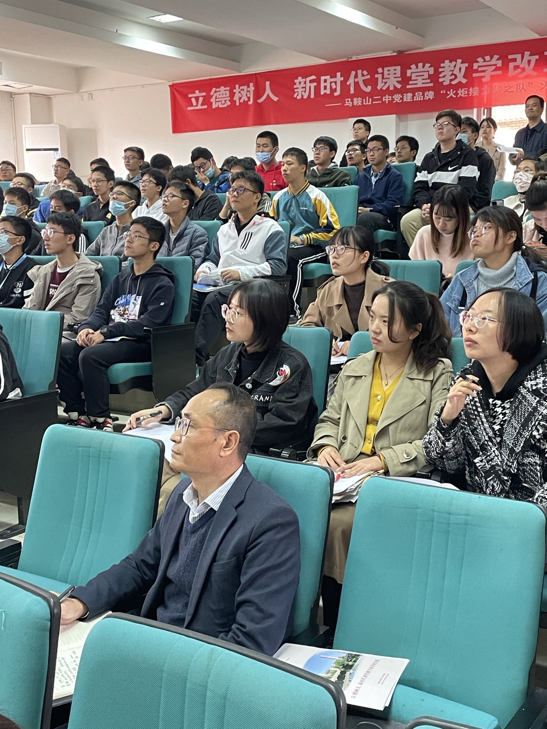 10月25日下午,馬鞍山二中黨建品(pǐn)牌“火炬接力夢之隊”第二輪火炬傳遞人課堂(táng)教(jiāo)學示範周正式拉開了帷幕。我校(xiào)戴俊賢、施德東兩位班主任圍繞“立德樹人,新時代課堂教學改革的實踐”的主題,以“追逐夢想,腳(jiǎo)踏實地”為題,為91视频网站展現了兩堂精彩的主題班會課。