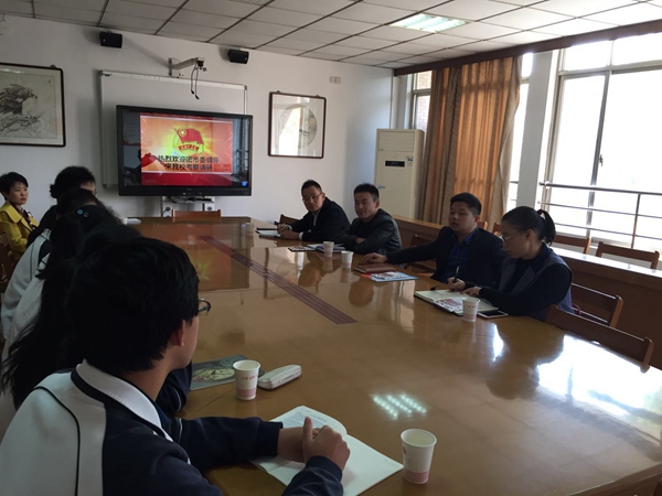 2017年11月2日上午(wǔ)9點,團(tuán)市委錢俊書記一行來(lái)我校調研中學共青團改(gǎi)革工作,參加座(zuò)談會的有我校青(qīng)年教師(shī)代表和學生代表。