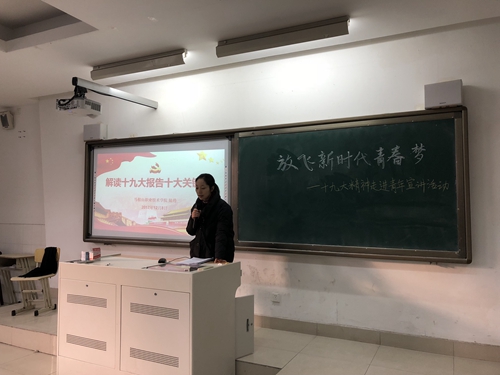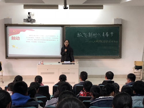 黨的十九(jiǔ)大勝利閉幕以來,全國上下掀起了一輪學習宣傳貫徹黨(dǎng)的十九大精神的熱潮。根據團市委統一部署(shǔ),12月8日下午,市青年宣講團(tuán)成員(yuán),市職業技術學院教師陸玲來到我校,為我校高103班和高219班兩個文科班學(xué)生帶來“放飛(fēi)新時(shí)代青春夢——十九大精神走進(jìn)青年”專題宣講(jiǎng)報告。