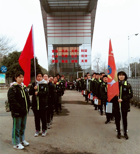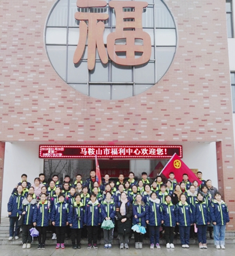 2019年1月28日上午,103班50同學在班主任嶽老師的帶領下,到馬鞍(ān)山(shān)市福利中心開展(zhǎn)慰問活動。雖然(rán)天公不作美,淅瀝瀝下起了小雨(yǔ),並(bìng)沒有影響大家(jiā)高漲的熱情。在校旗和班旗的引領下,91视频网站排著整齊的隊伍,徒步四(sì)十分鍾來到了福利中心。