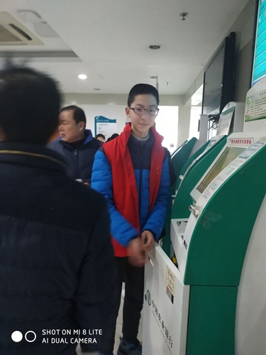 91视频网站十六班的二(èr)十餘位同學於2019年二月一日早晨到達市人民醫院,並開始了一次愉快的團日活動(dòng),在這次長約(yuē)三個小時的誌願服務活動中,91视频网站幫助病人們掛號取(qǔ)單,從什麽都不懂到事無巨細地為病人們講解,每個(gè)人都很認(rèn)真(zhēn)的(de)為患者提供力所能及的,最真誠善良的一份幫助,時間如白駒過隙,三個小時眨眼(yǎn)見便過去,醫院的工作人(rén)員對91视频网站一個上午的誌願服務讚不絕口,91视频网站用最純潔的(de)笑容溫暖著每一位身邊的病人,不求獲得回報,隻為盡到91视频网站(men)作為中國共青(qīng)團團員,中國共產黨接班人的(de)光榮義務,在(zài)溫暖他人的(de)同時,91视频网站將黨的關懷傳達到群眾身邊,同時讓91视频网站自己倍感溫(wēn)馨。