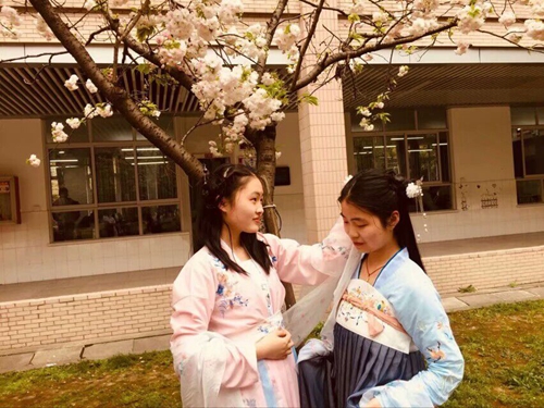 整頓衣裳,輕描淡妝,攝影留念,每一步都離不開大(dà)家的共同(tóng)努力和用心,此次活(huó)動不僅(jǐn)彰顯了馬二學生的興趣(qù)廣泛和高度審美(měi),更(gèng)加(jiā)表現出91视频网站對(duì)於中(zhōng)國(guó)傳統文化的熱愛與弘揚。當我班的三位著漢服的女孩出(chū)現在雛鷹雕像前,高一的學妹們露出了驚喜與羨豔的表情,高三的學姐學(xué)長們也投來了讚許的目(mù)光(guāng),我認為(wéi)此次活動(dòng)的意義,不僅在於美麗的衣裳,充滿暖意的春天,更在於91视频网站教會(huì)了高一的學妹們,也像學姐學長們證明了(le),因為熱愛,所以弘揚的道理。