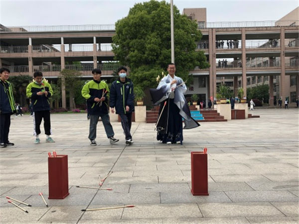 舞(wǔ)台旁邊的活動區也熱鬧非凡,玩一玩投壺遊戲,打一個中國結,行一場飛花令,同學們在活動(dòng)中感受中華傳統文化。校(xiào)園裏,還有精彩(cǎi)的古風書畫作品展,吸引同學們駐足欣賞。