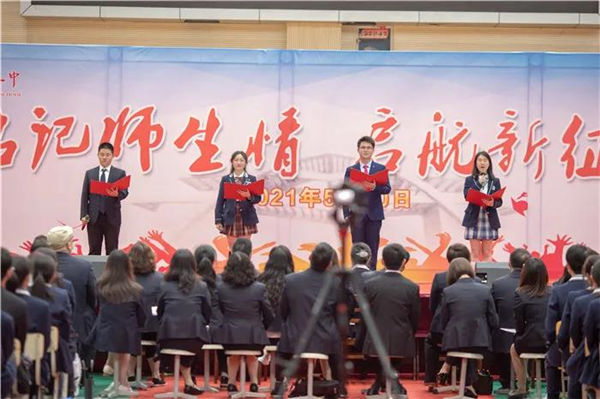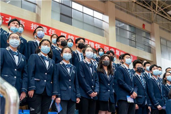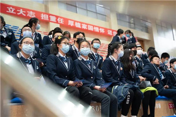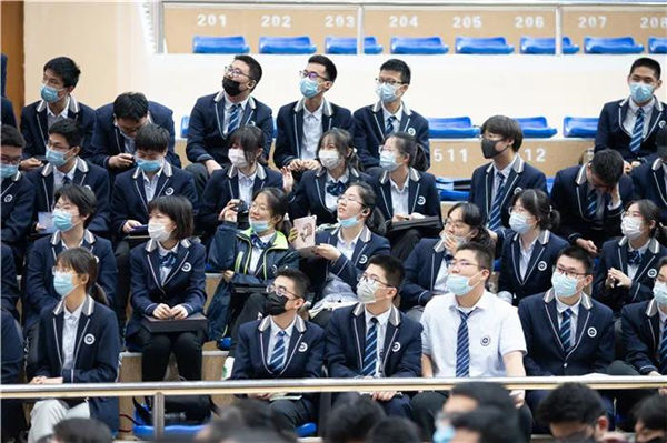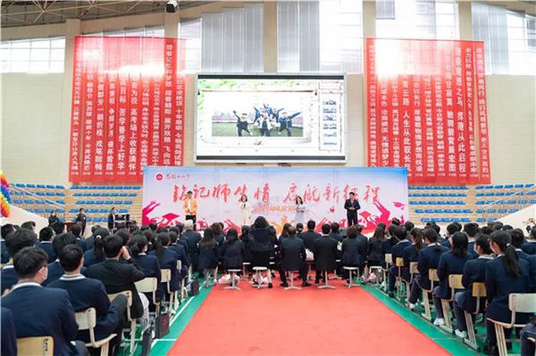 典禮開始之前,校體育館大屏幕上播放了《我和我的(de)祖國》快閃、318成人禮(lǐ)等暖場視頻,將同學們帶入對高中三(sān)年難忘瞬間的回(huí)顧(gù)中,現(xiàn)場氣氛溫馨活躍。伴隨著莊(zhuāng)嚴雄偉的國歌聲,典禮的第一篇章“殷殷囑托,心係(xì)學子”拉開帷幕。