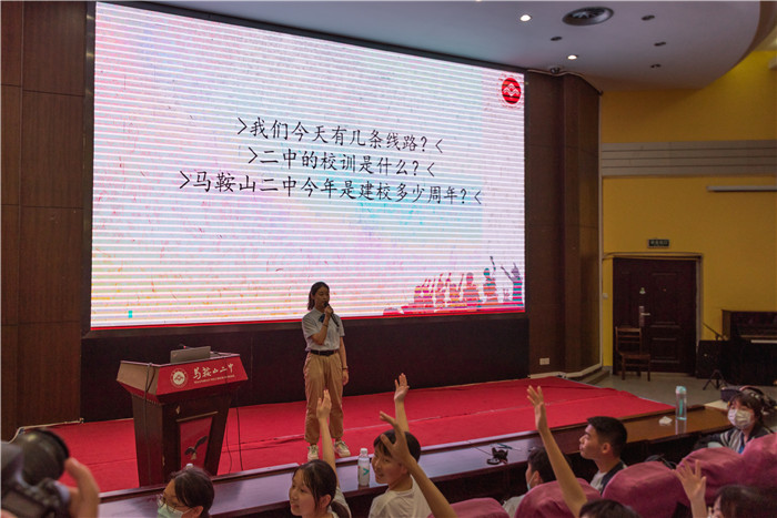 午飯過後,按耐不住(zhù)興奮之情的高一同學們紛紛而來,活動在學術報告廳正(zhèng)式拉開了帷幕。首先,學生校長助理(lǐ)林樂章、方語馨依次上台,他們生動、細致地向大家介紹了馬(mǎ)鞍山(shān)二中學生校長助理的工作職責和本次活動的主要內容。隨後,副校長王躍兵向同學們介紹了二中的建校曆史,帶領同學們領略了二中精神的內(nèi)涵,並鄭重宣布活動開始。