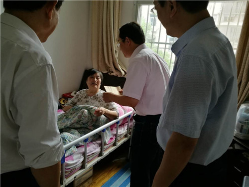 褚校長、喻主任一行前往(wǎng)位(wèi)於桃園小區的老黨員楊老師的家中走訪慰問,楊老(lǎo)師今年已84歲,是一個黨齡已(yǐ)有50多年的老黨員,目前(qián)楊老師身患疾病,看到前來慰問的同誌很是感動。褚校長代表學校對楊老師進(jìn)行了慰問,並送去了慰問金,希(xī)望楊(yáng)老師安心養(yǎng)病,早日康(kāng)複。