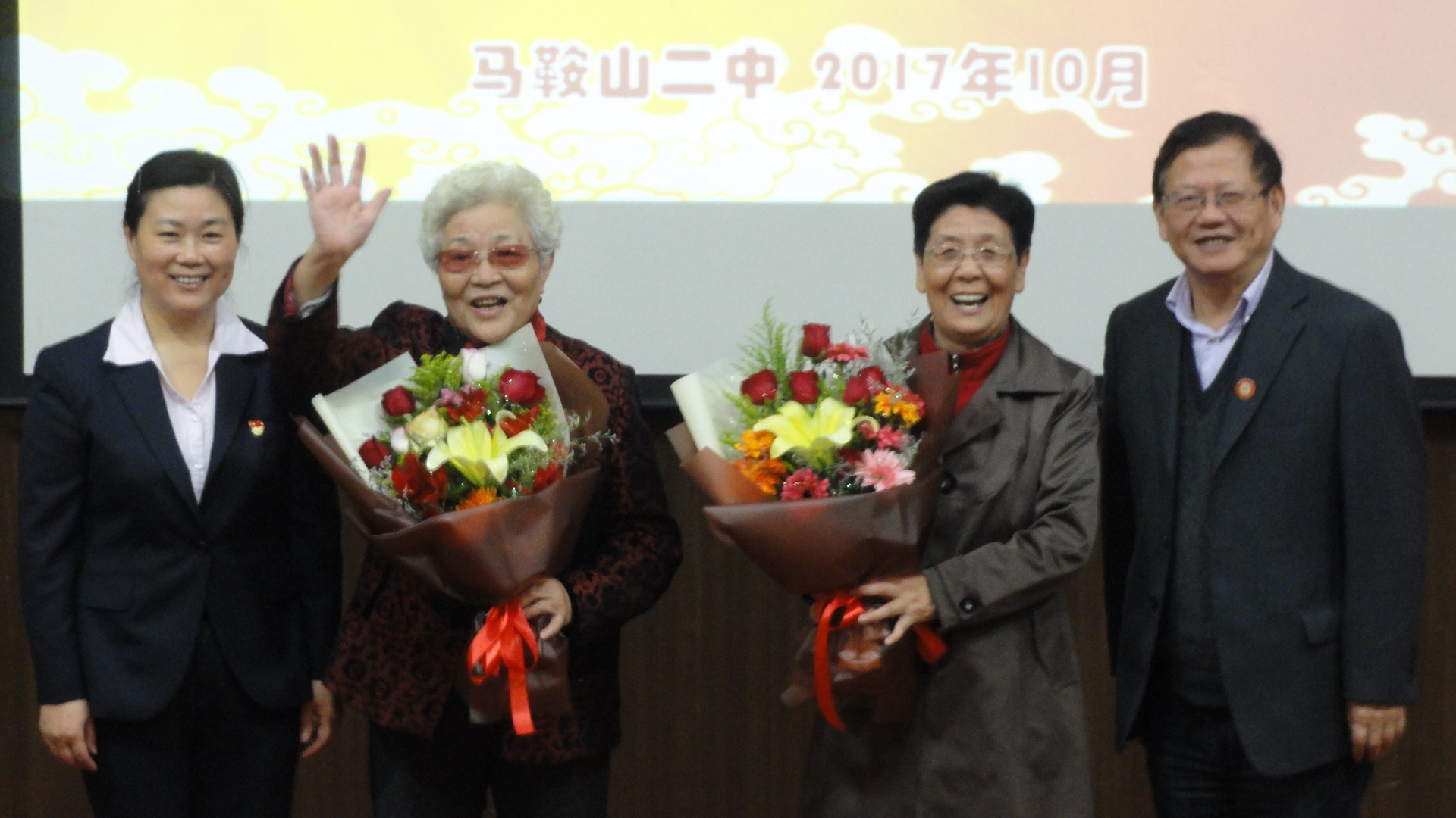 1026,退教協重陽節慶祝活(huó)動之一“重陽祝壽”在校圖書館報(bào)告廳舉行,七(qī)十多位退休老教工們歡聚一堂。上(shàng)午10:00,原二中工會主席趙(zhào)朝平同誌擔任主持,祝壽會(huì)在校黨委聶曉霞書記(jì)的(de)重陽賀詞中拉開帷幕,接著,校(xiào)領導為今年光榮(róng)退休的呂品、孫華、劉婷、何效林、 胡明元、葛海寧(níng)、伍俊萍、陶娟等八位老師送上了退休祝福,並為902位壽星:解溫道(dào)、葉顯瑛(yīng)804位壽星:餘易(yì)文、譚(tán)景春、蔡澤民、陳平和708位壽星:葉紹青、楊維蓮(lián)、程友蘭、沈球、吳超、張祝平(píng)、金玲娣(dì)、龔(gōng)曉燕,共14位老教師們祝壽。壽星(xīng)代表沈球(qiú)老師以樸實簡潔的話語,表達了對(duì)黨對學校的感謝,鼓勵老同誌們在新時代老有所(suǒ)為、老有所學、老有所樂,關鍵要保重身體,健康快樂的安度晚年。校領導還為到場的所有老(lǎo)同誌贈送了《校友名(míng)錄》和校慶吉祥物,為他們送上了真摯的感謝和節日的祝福(fú)。