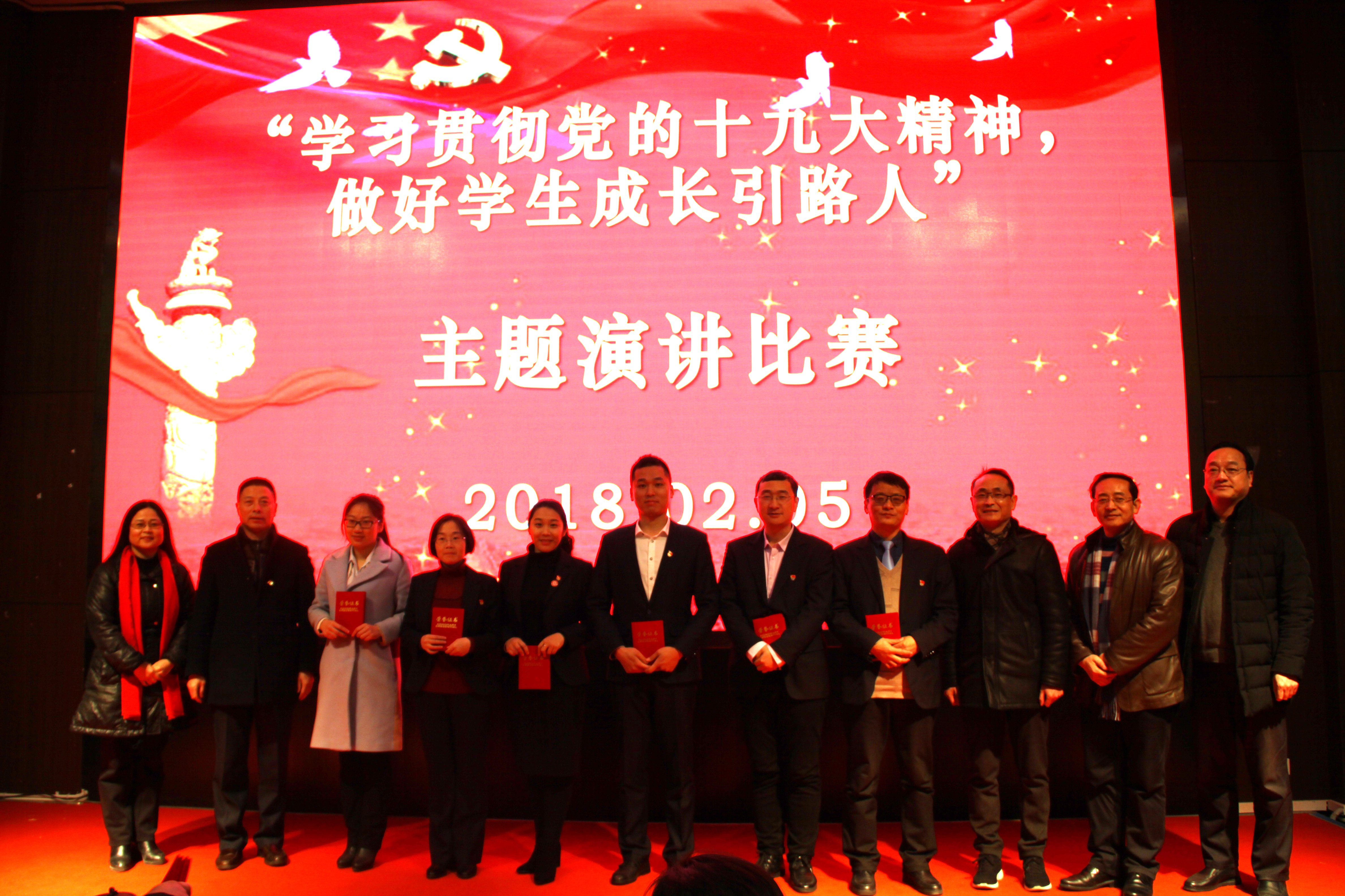 “學習貫徹黨的十九大精神,做好(hǎo)學生成長引路人”主題演講2月5日下午四點在圖書館一樓報(bào)告廳舉行,共有來自我校五個(gè)黨(dǎng)支部的十位老師參加。參賽教師準備充分(fèn),登台談自己身邊的先進人物、先進事跡,深情並茂,感(gǎn)人至深。經過一番(fān)激烈角逐,最(zuì)終潘文傑老師、唐曉文老師、施瑋老師、楊青青老師榮獲一等獎,楊珵老師、張新智老師等獲得二等獎(jiǎng)。