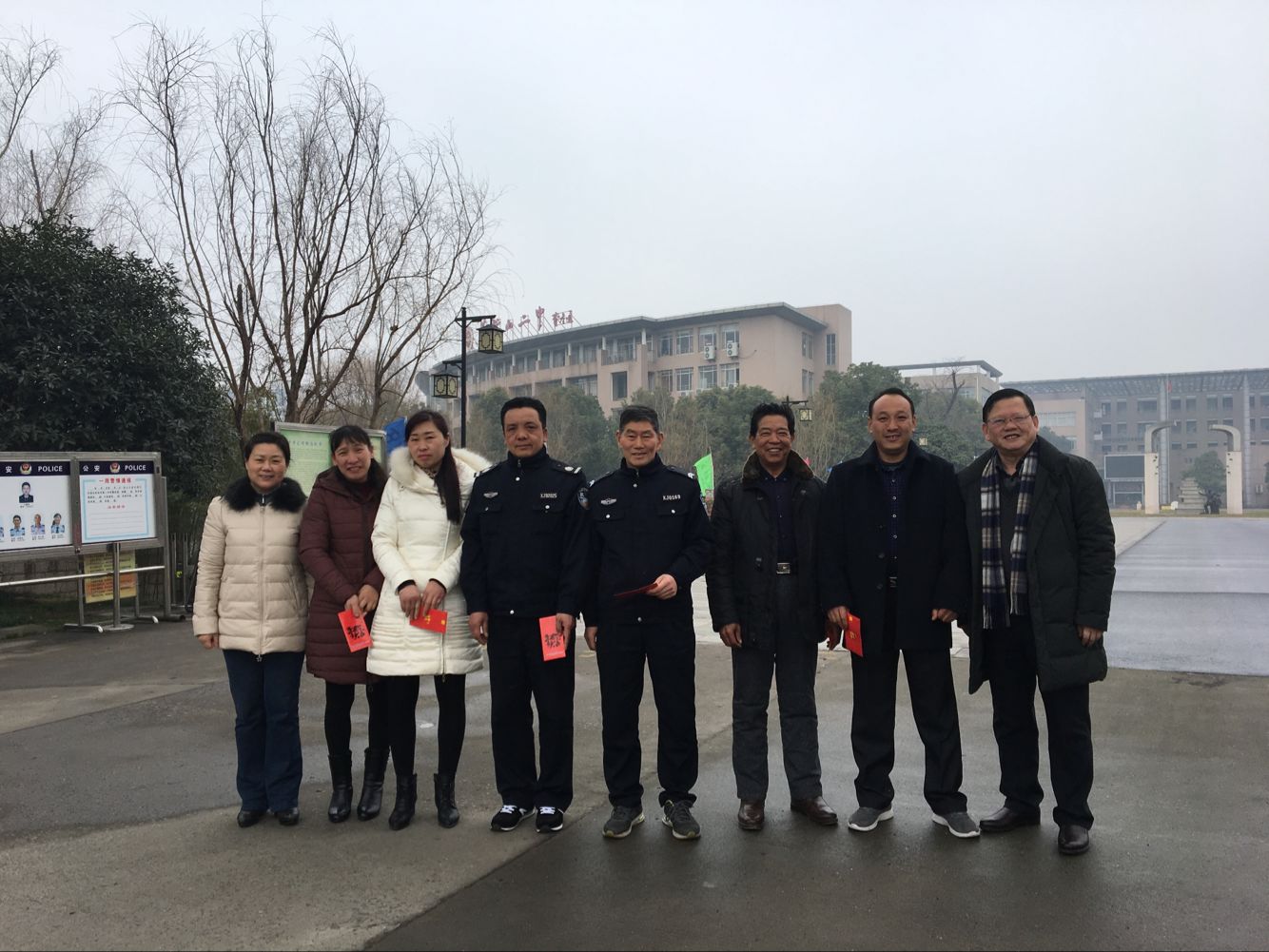 在學校南大門門崗,聶曉霞(xiá)、郭惠宇與值班(bān)人員親切握手,向(xiàng)他們為(wéi)確保節(jiē)日期間校園安全穩定而放棄與家人團聚,堅守工作崗位表示崇高的敬意!並(bìng)向他們和家人致以(yǐ)節日問候!同時,囑咐值班人員要以高度的責任感,值好班、站好崗!廣大值班人員也感謝學校(xiào)領導的關心和祝福,表示一定恪盡職守,做好各項保障工作,讓廣大教職員(yuán)工過一個平安祥(xiáng)和的春節。