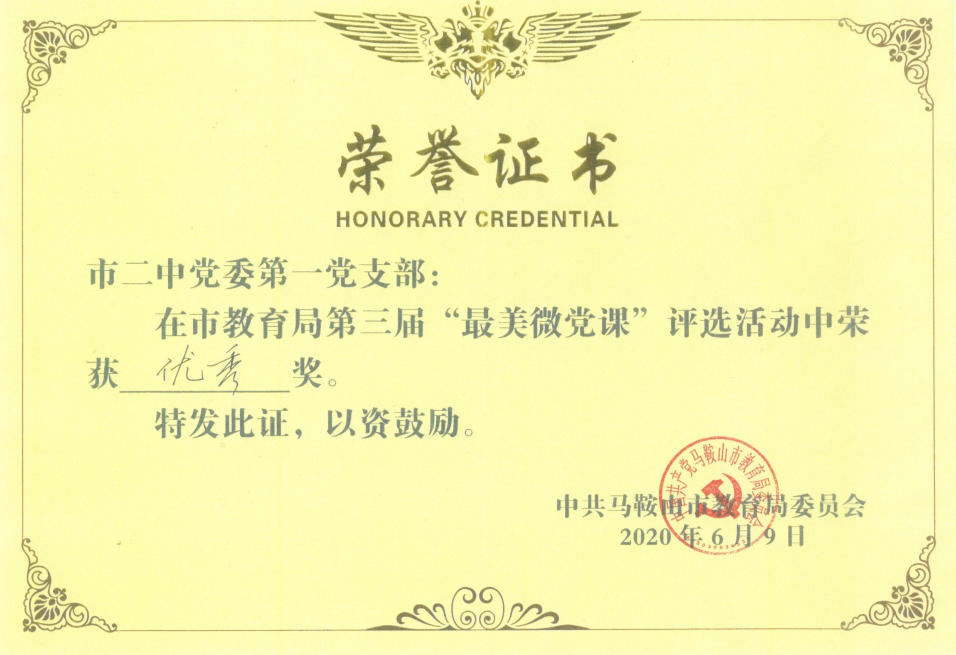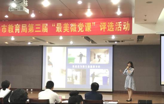6月9日下午,市教育局第(dì)三屆“最(zuì)美微(wēi)黨課”在(zài)市教育局第一會議室舉行,17個黨支部分別用朗誦、講述、情景劇等形式為大家呈(chéng)現了一個個動人的初心故事(shì)。市教育局黨委副書記、副局(jú)長陸(lù)秋雯,市教育局二級調研員汪久生與全市教育係統部分黨員幹部代表一起觀(guān)看了比賽並為參賽選手頒發獲獎證書。市二中黨委第二黨支部黨員教師唐舒婭、第一黨支部黨(dǎng)員教師魯燕最(zuì)終在17堂精彩的“最美微黨課”中脫穎而出,分獲一(yī)等(děng)獎和優秀獎。我校(xiào)朱家讀(dú)、祖冬華等十餘名黨員代表全程觀看了比賽。