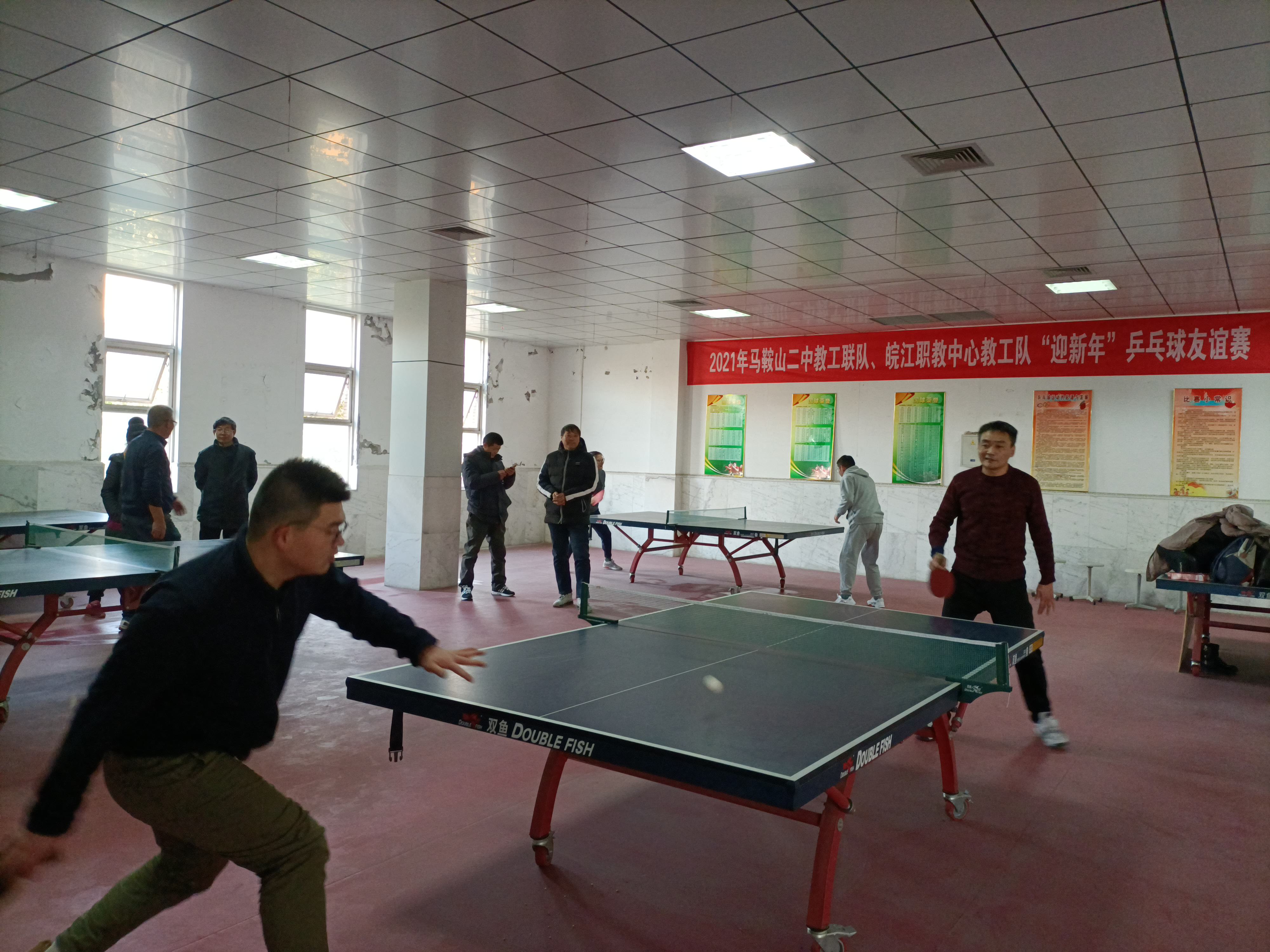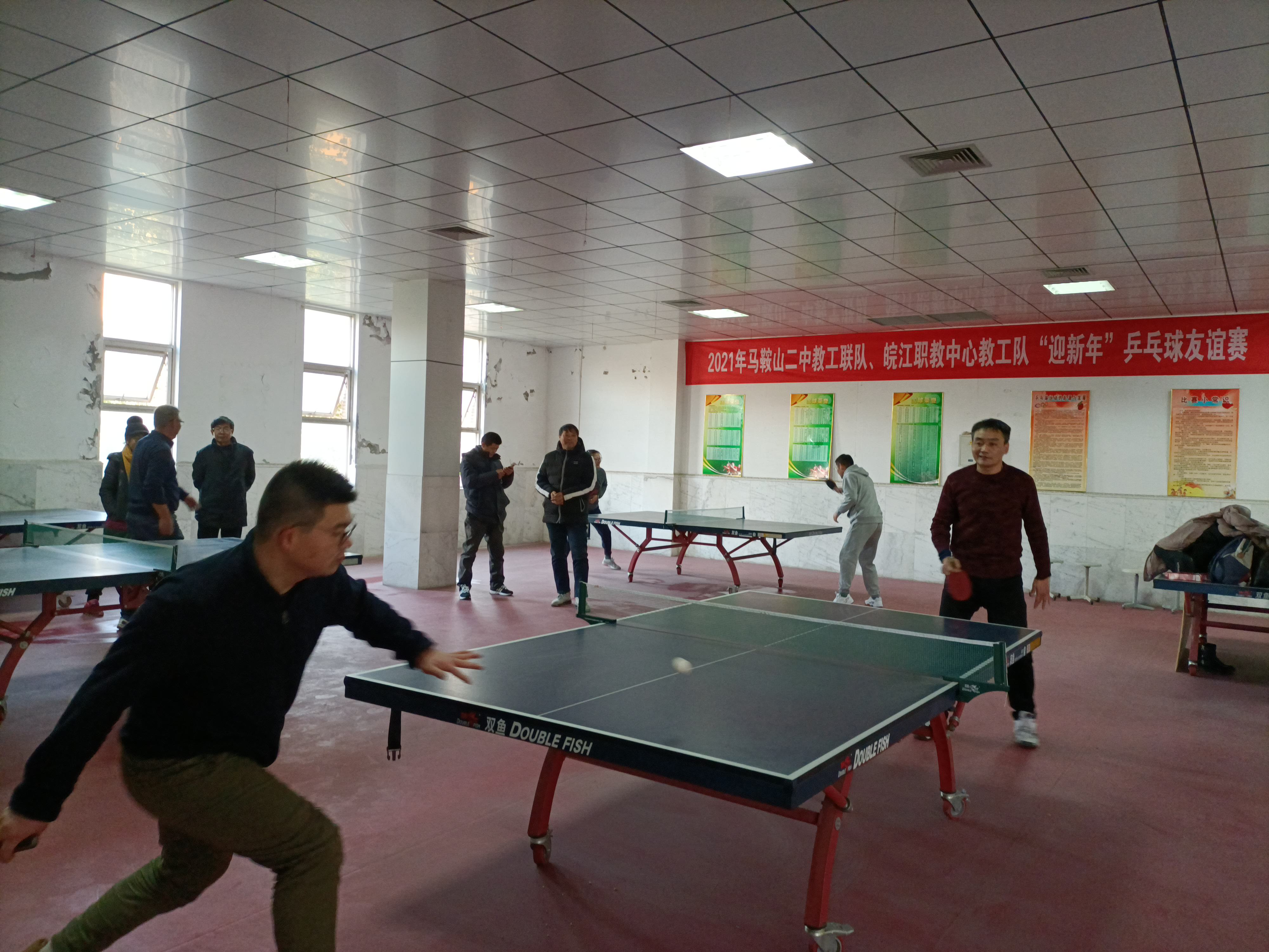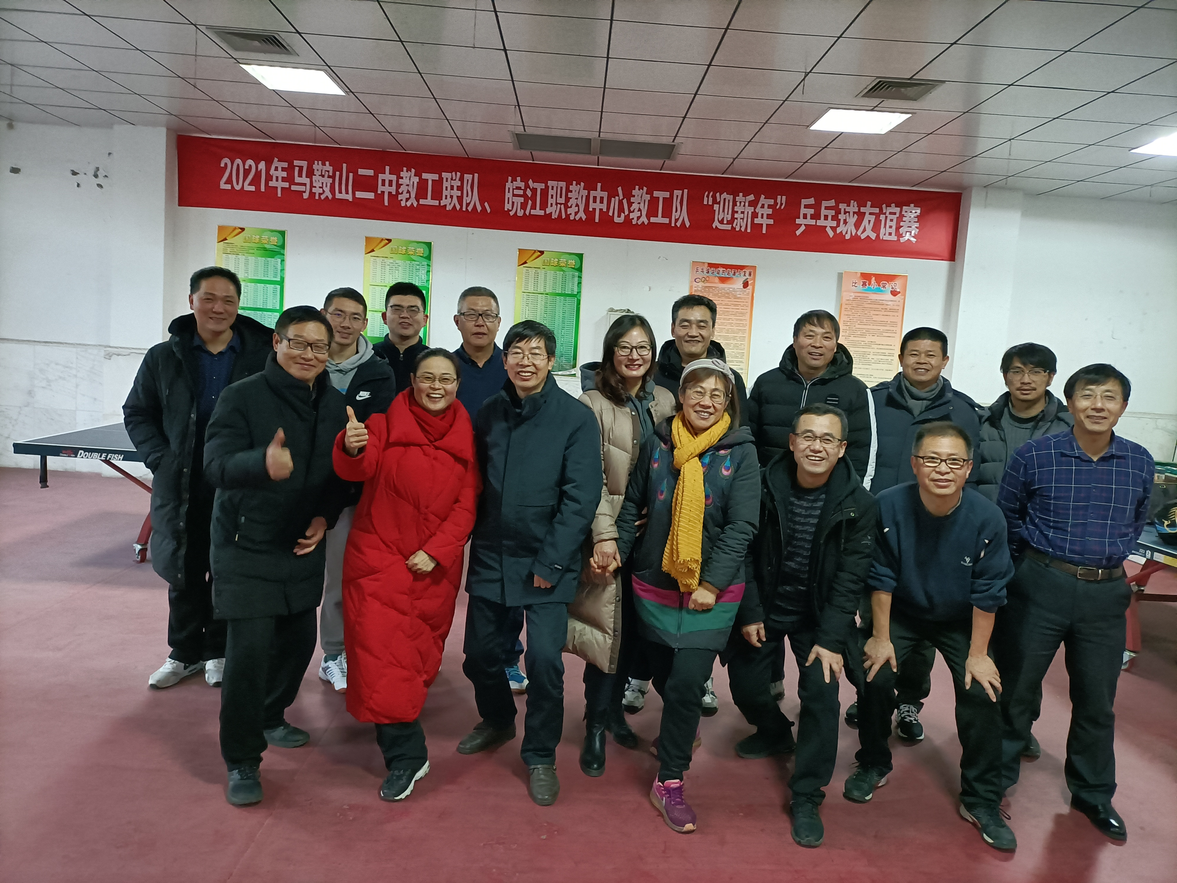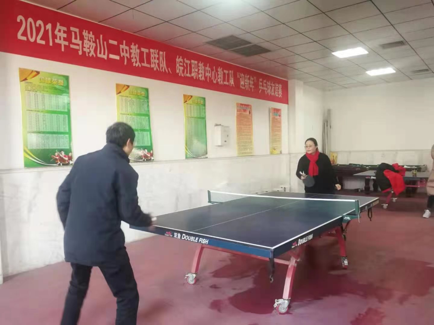 2021年1月7日下午,馬鞍山(shān)二中和馬鞍市皖江職教中心教(jiāo)職工(gōng)“慶(qìng)元(yuán)旦、迎新春”乒乓球友誼賽在我校乒乓球館(guǎn)拉開戰(zhàn)幕(mù)。下午2:30,雙方隊員們集合熱(rè)身,我校參(cān)加(jiā)比賽活動的(de)老師有:許二新、沈榮(róng)、施德東、孫濱、劉誌(zhì)發、韓靖、畢小紅、陳向群(qún)、汪紅、章(zhāng)明星。