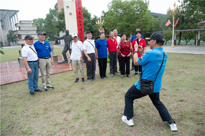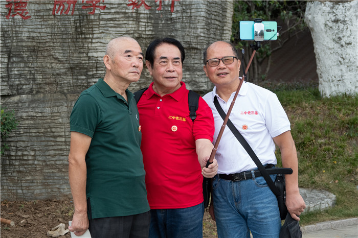 校友們早早來到校園內,在校訓石(shí)、“攀(pān)登”雕塑、“七星浮雕”、“雛(chú)鷹展翅”前駐足合影,共話同窗情。