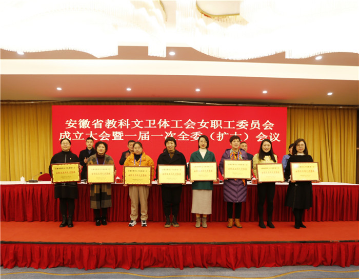 12月16日,安徽(huī)省教科文衛體工會女職(zhí)工委員會成立大會暨一(yī)屆一次全委會議在合肥召開。我(wǒ)校工會女(nǚ)職工委員會獲得“安徽省教科文衛體係統工會女職工工作先(xiān)進集體”稱號,工會主席畢小紅接受了表彰並作為獲獎先進集體在大會上作了交流發言。