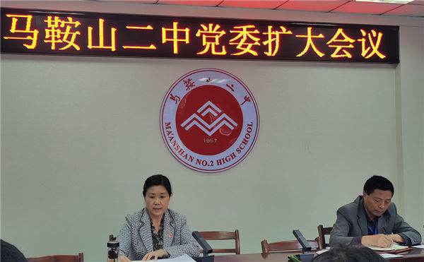 10月19日,馬(mǎ)鞍山二中黨委在行(háng)政樓一(yī)樓會(huì)議(yì)室召開黨委(wěi)擴大會議。黨(dǎng)委書記聶曉霞(xiá)主持會議,學校黨委委員、各支部書記(jì)、學校中(zhōng)層以上黨員(yuán)幹部參加了會議。